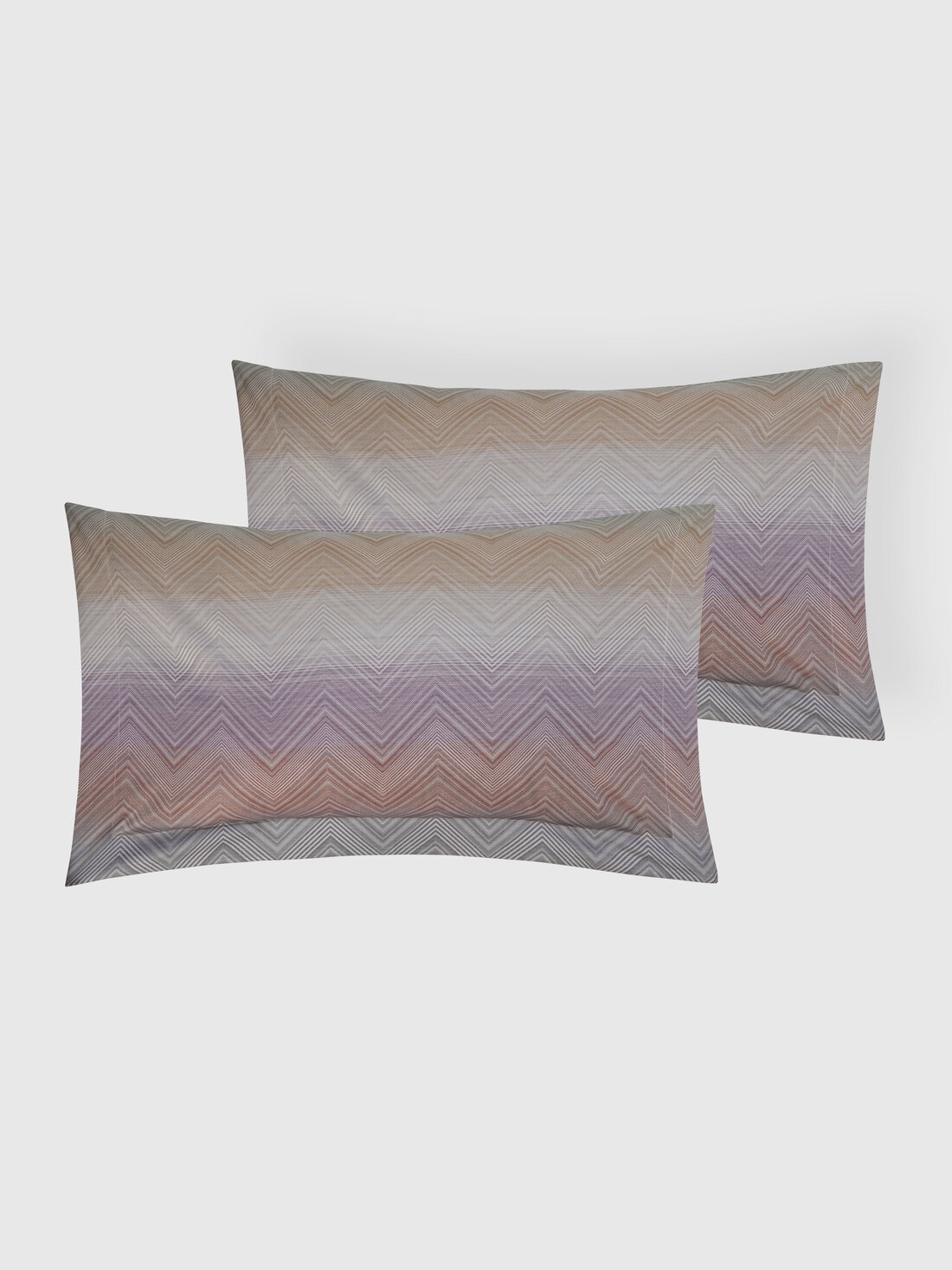 Chevron stripes alternate in a pattern with the unmistakable MissoniHome DNA with zigzag patterns in degradé tones, which give the impression of a delicate shade, on the surface of Marea, the pair of 50x80 cm cotton pillowcases.