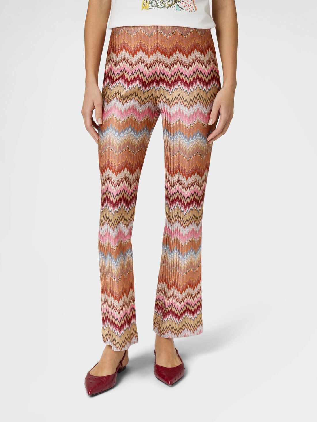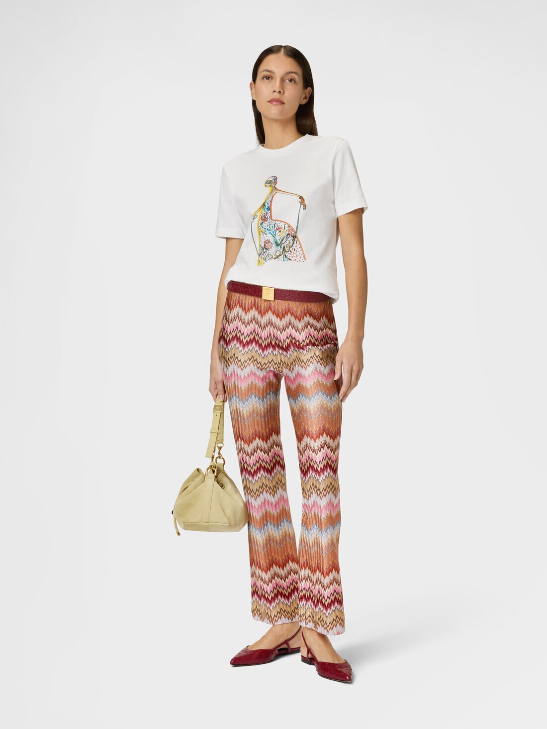 A piece with a graphic and contemporary allure: these cropped flared women’s trousers in 100% viscose with an elasticated waistband combine the chevron motif with the snake pattern, creating a dynamic and distinctive effect.