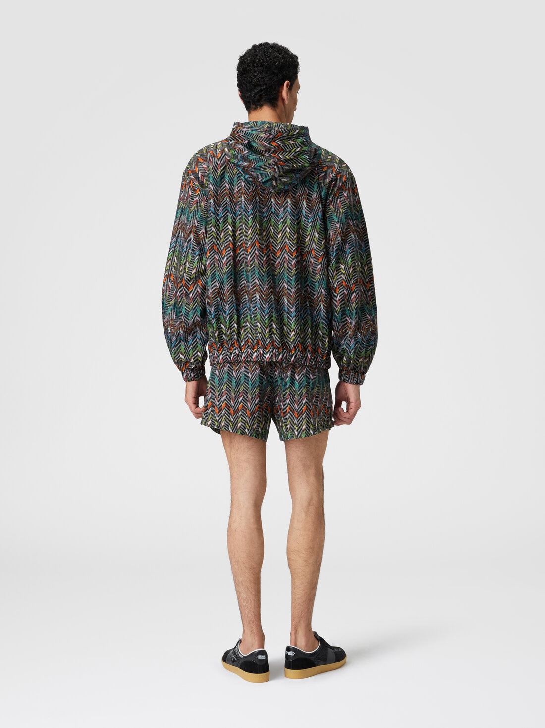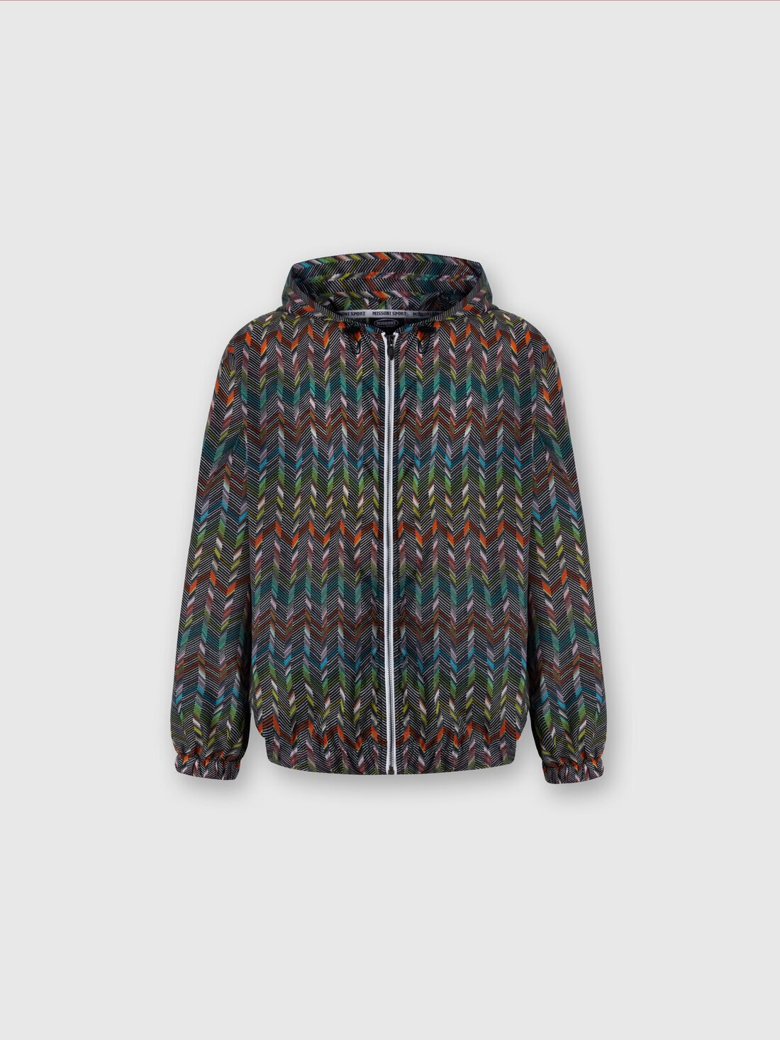 Outdoor sports require certain precautions: first and foremost, a lightweight outerwear to cope with any inclement weather. Here is the Missoni men’s windbreaker, made of hi-tech nylon and customised with the iconic Caperdoni print. The hood with drawstring and elastic trim refine the piece with embroidered logo lettering.