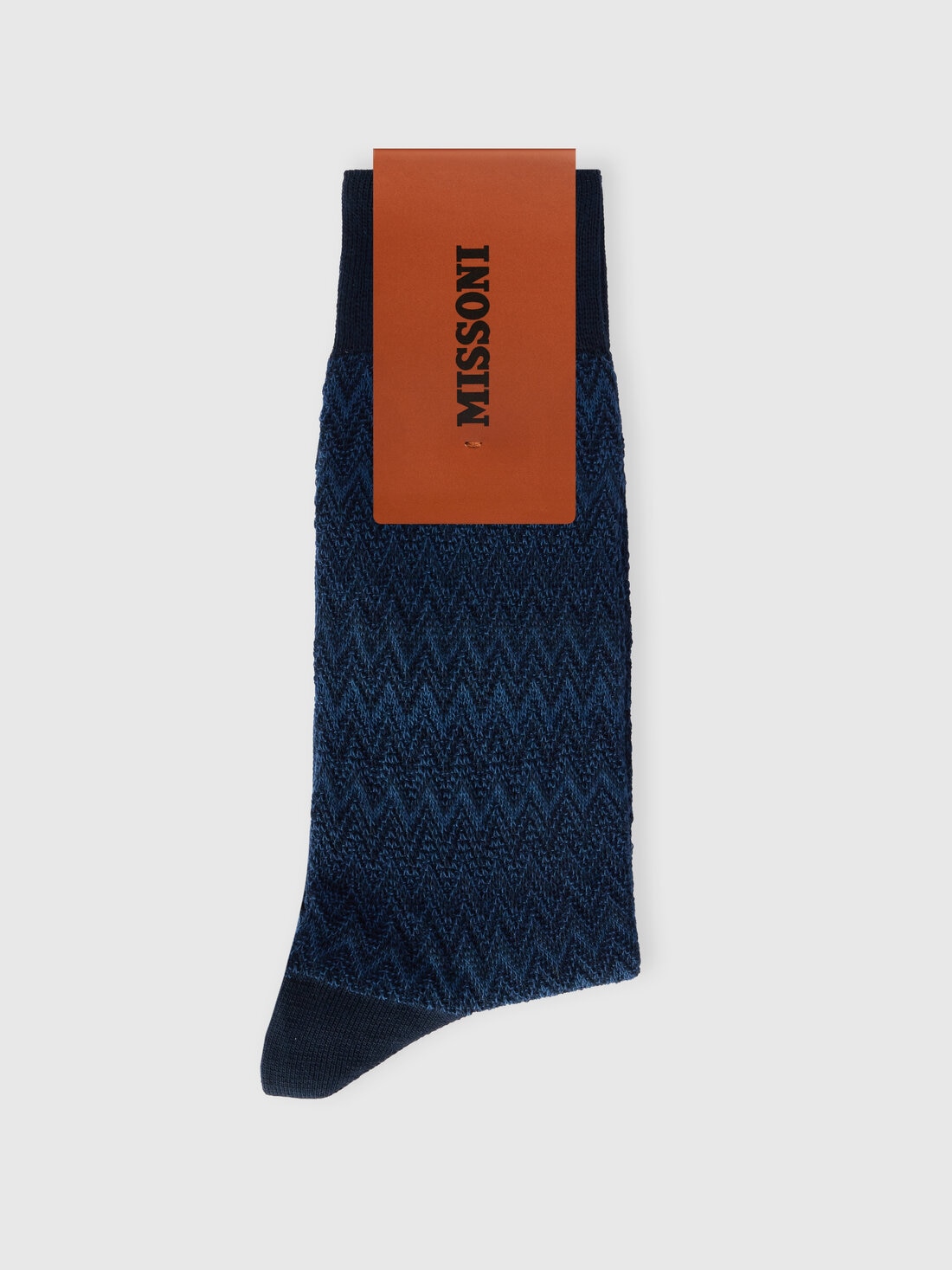 The iconic 3D effect zigzag pattern and solid color inserts define these mid length cotton blend men’s socks by Missoni, the perfect accessory for experimenting with everyday style.