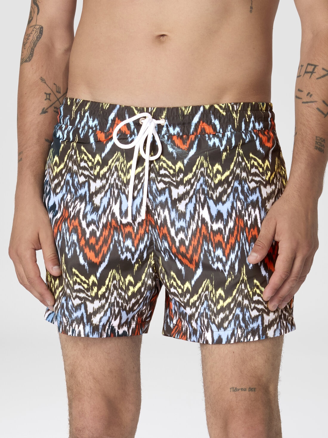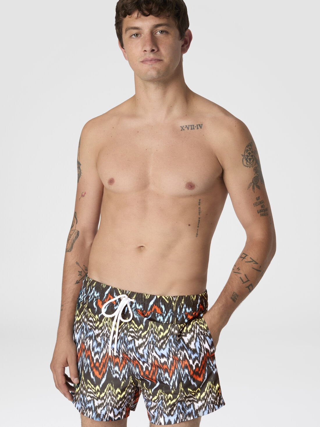 The Maison’s zigzag motif is reimagined in an abstract version in these mid-length men’s swim shorts, made of nylon and characterized by a contemporary graphic effect.