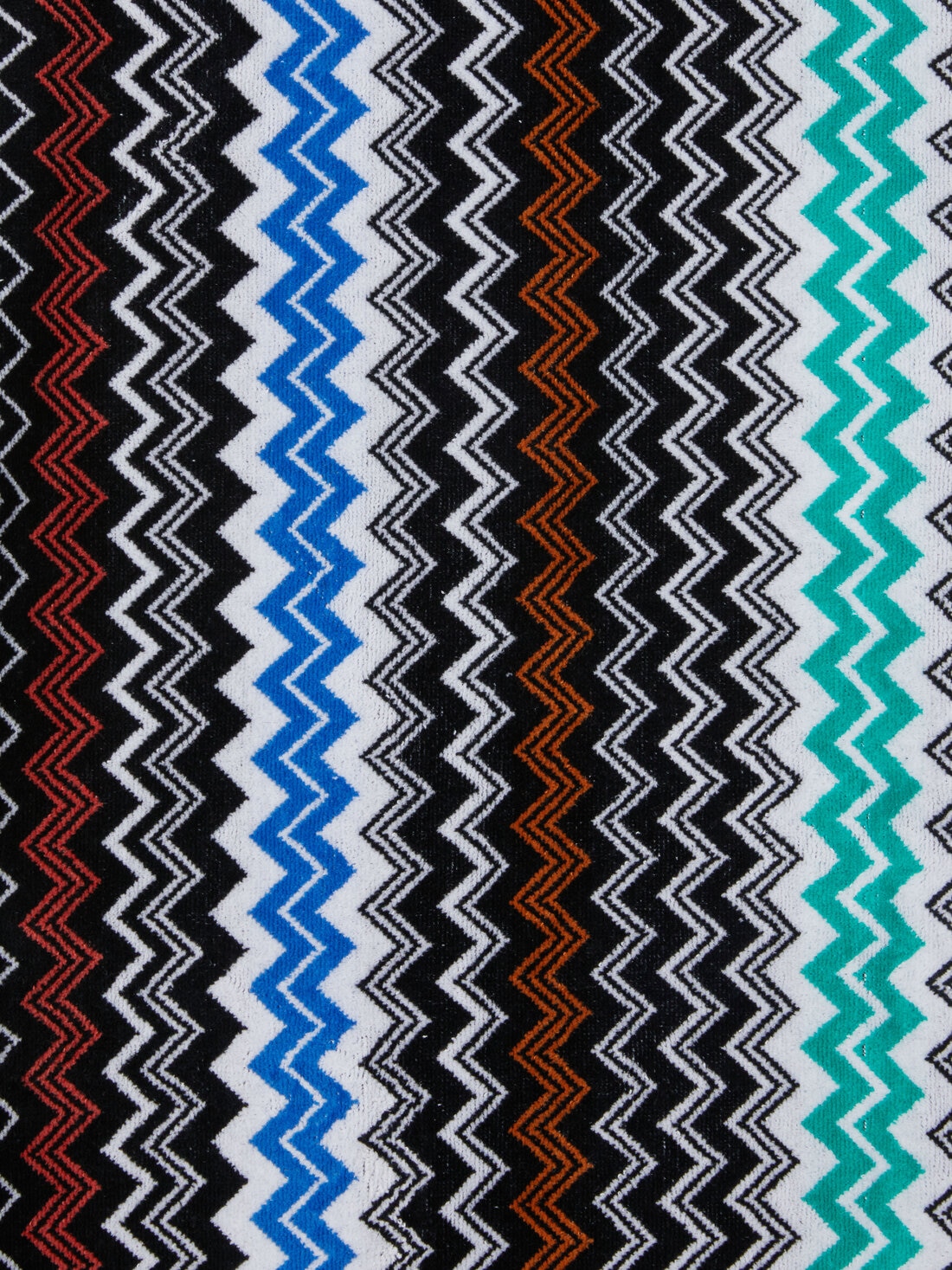 Neoclassic, the MissoniHome bathrobe, stands out for its iconic zigzag pattern. The wrap-around hood, waist belt and ample patch pockets complete the garment.
