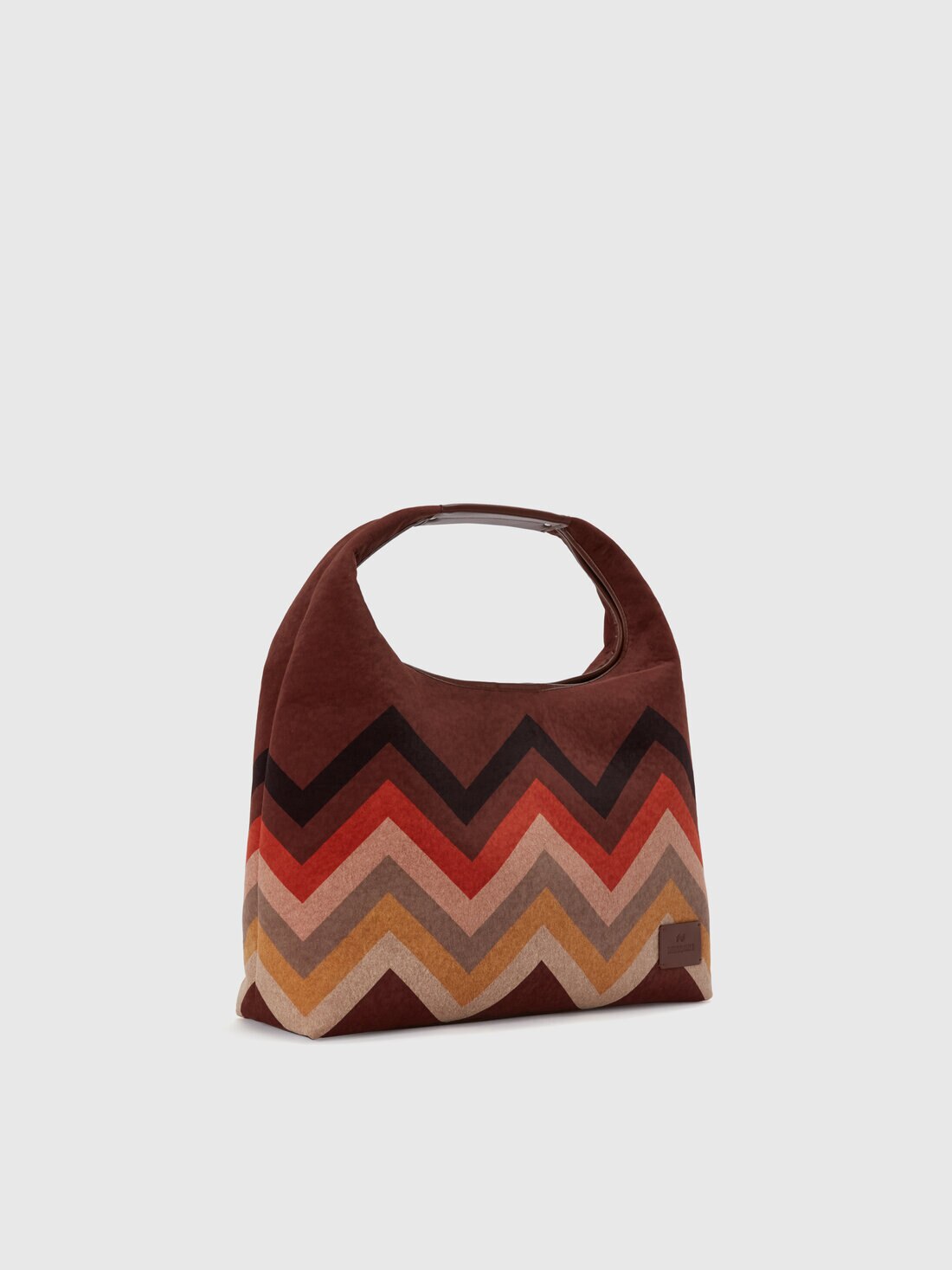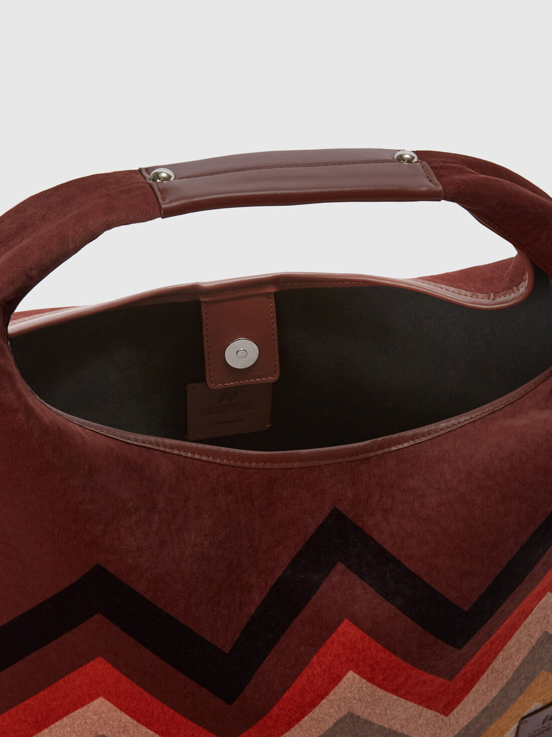 Finished with luxurious details, such as the covered handle and leather logo patch, the women's hobo bag embodies Missoni's DNA thanks to the iconic zigzag fabric that characterizes it.
