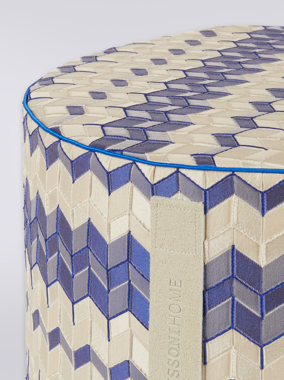 With a dynamic interplay of shadows and depth, Tread, a 40x30 cm cylindrical pouffe, features a sophisticated, garment-dyed jacquard fabric that lends a three-dimensional effect to its chevron pattern. The split handle with imprinted logo adds a touch of timeless style to this versatile furnishing accessory.