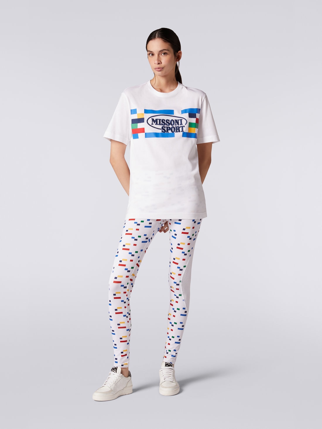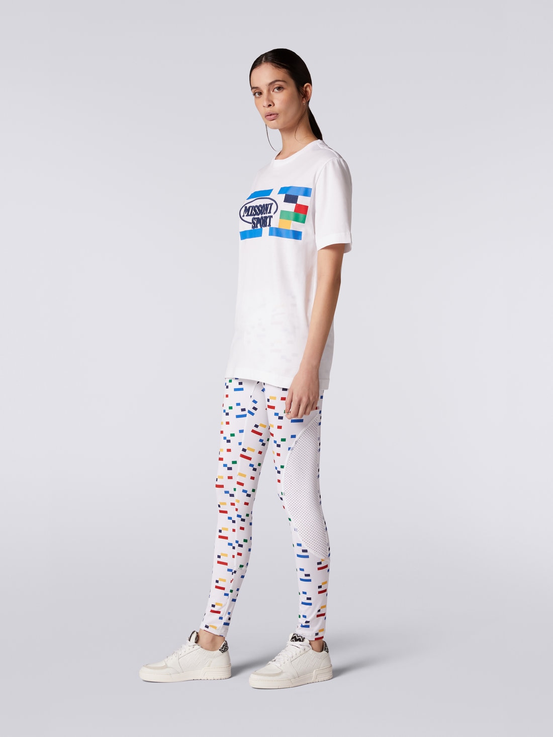 The women’s short-sleeved crew-neck T-shirt is one of those essentials that the casual wardrobe simply cannot do without. The Missoni Sport piece, made of pure cotton, showcases the brand’s hallmarks. It is enhanced by the pixel graphic and large logo print on the breast.