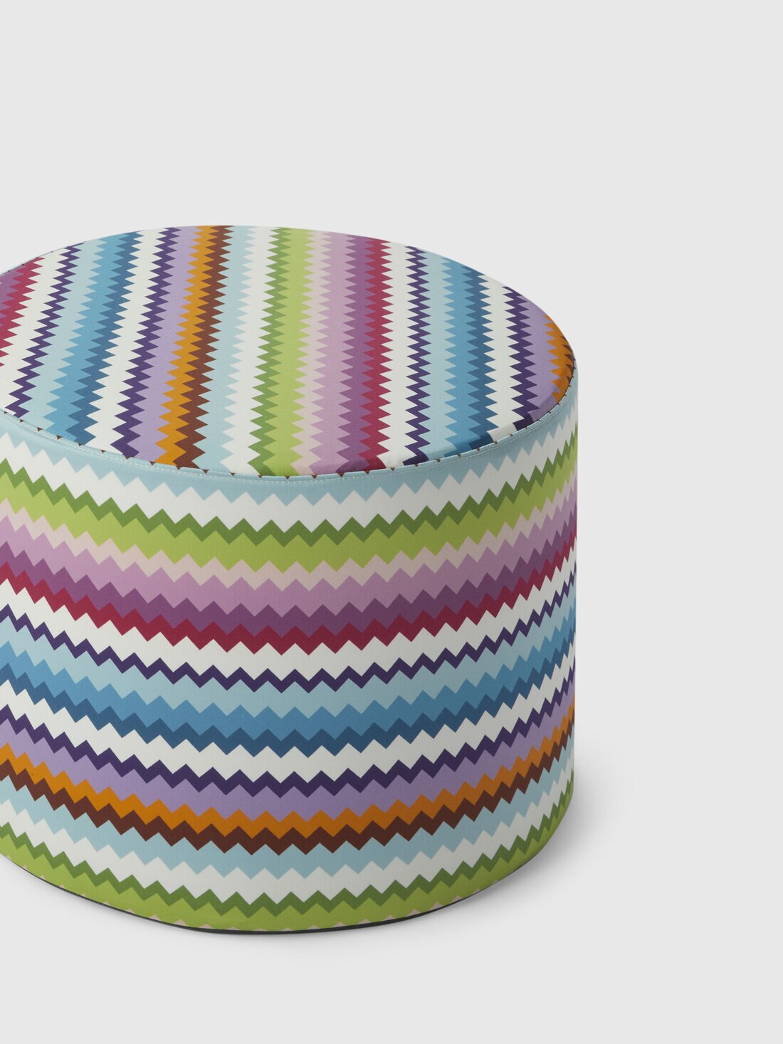 Riverbero, the Missoni Home cylindrical pouf, size 40x30 cm, is an elegant addition to the interior. Made of high-quality cotton canvas, it features a vibrant zigzag print that gives dynamism and color to the room. It offers a comfortable place to sit or rest your feet, while also serving as a decorative element to enrich the space.