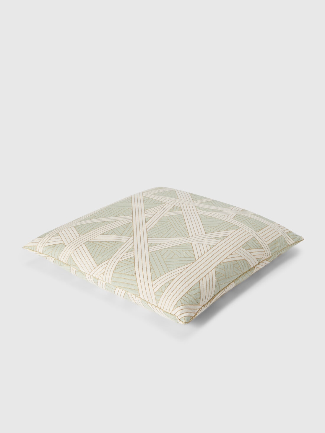 The Nastri cushion, measuring 60x60 cm, features contrasting gold stitching. Complete with an elegant logo label, the cushion offers a sophisticated design and refined details, adding a touch of luxury and style to any room.