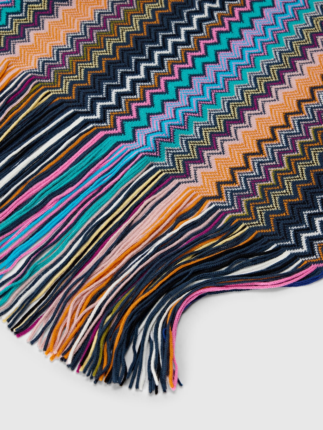 Missoni's signature zigzag pattern meets lightweight fringes in this women's scarf, adding movement and style to any outfit. A refined accessory, perfect for elegantly completing any look.