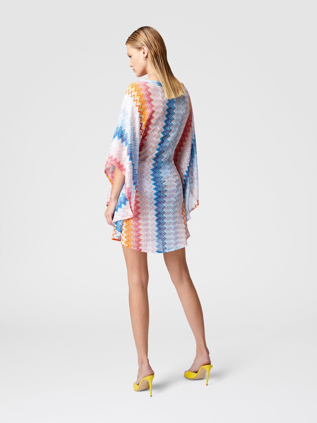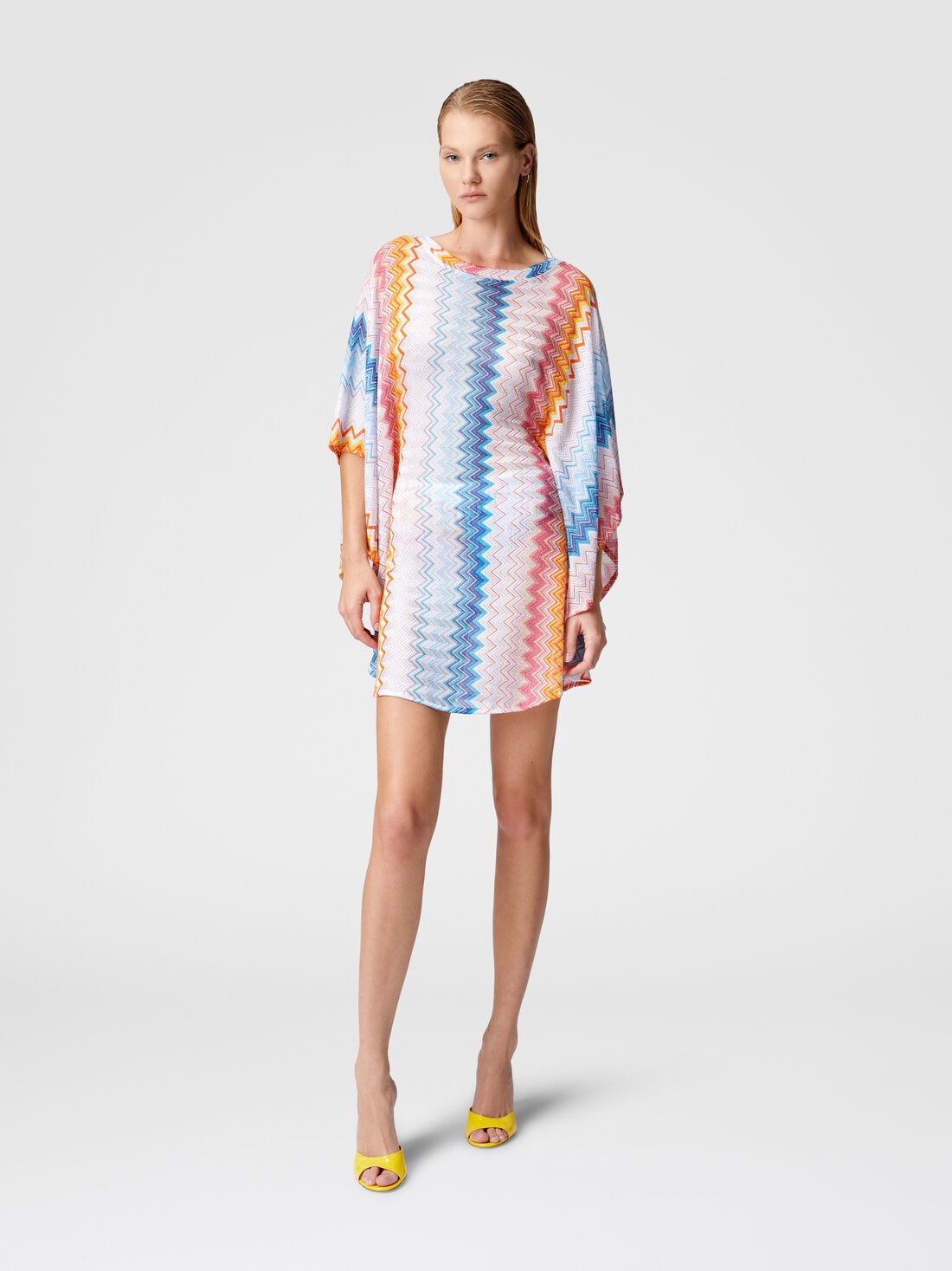 Short kaftan in zig zag lamé viscose blend with batwing sleeves