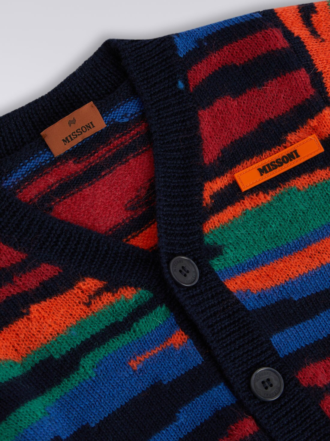 Featuring a customised button fastening and embellished with the logo label, the Missoni boys’ cardigan combines comfort and style. Plain trims create a pleasant contrast on the multicoloured knit of the garment, which is made of pure wool.