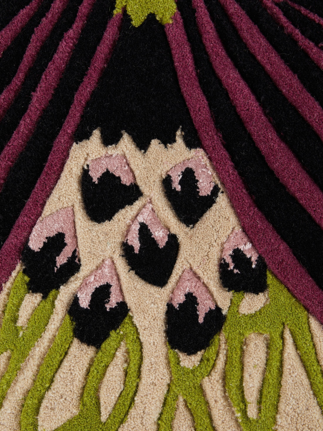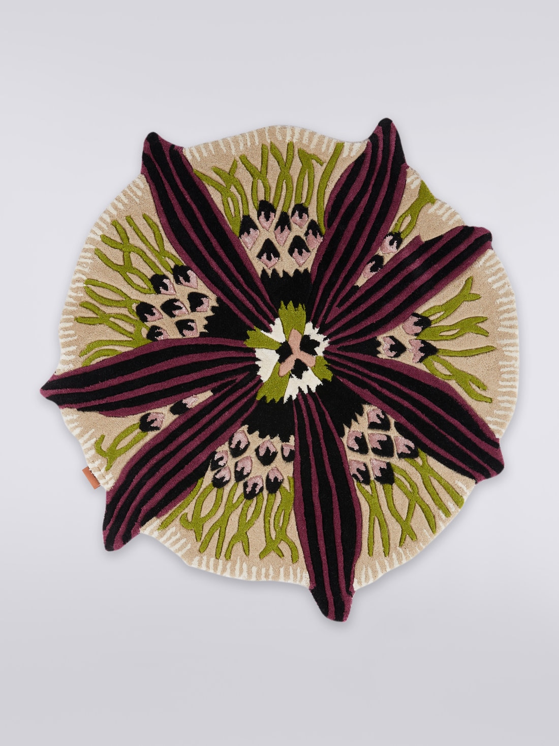 A textile blend of wool and viscose embellishes the cheerful personality of the Botanica round carpet. The 110 cm diameter is perfect for giving space to all of Missoni's creativity, which offers a version of this home accessory with a strong floral inspiration.