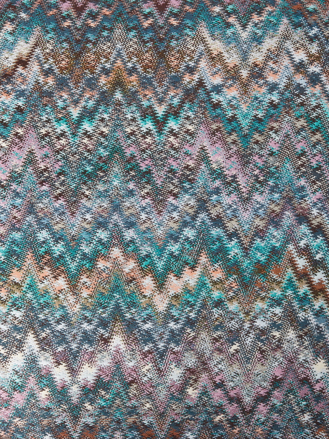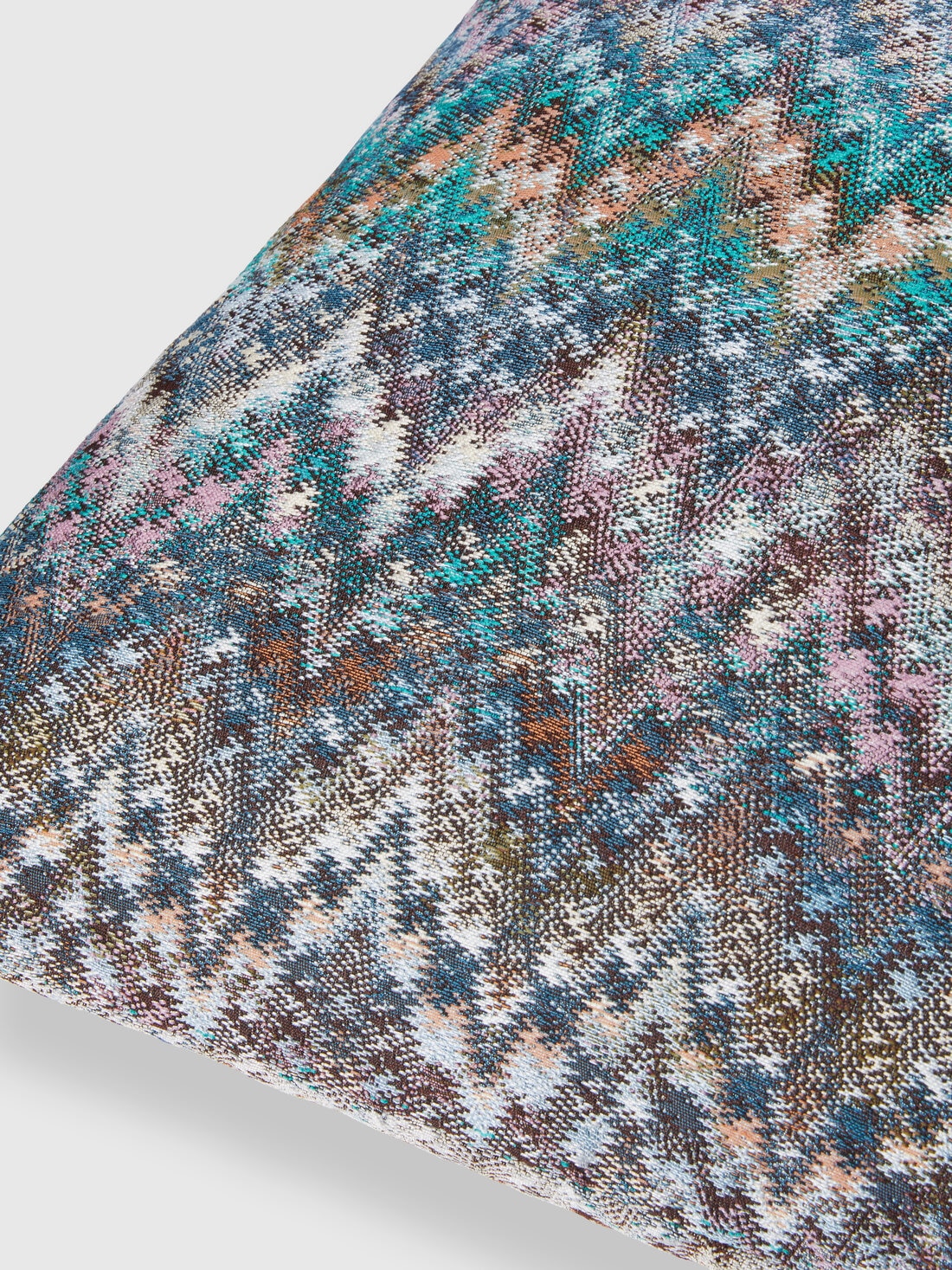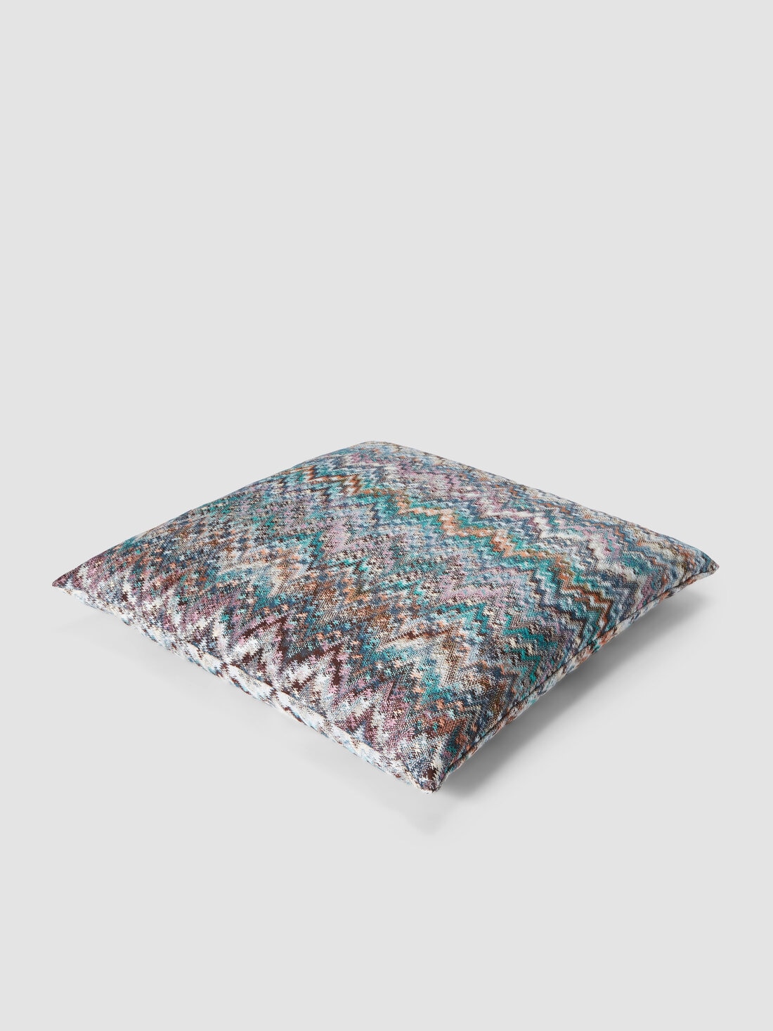 An intricate chevron pattern characterises the surface of Parrot, the 60x60 cm cushion embellished with shaded zigzags that create an almost optical illusion effect. Missoni's textile craftsmanship manifests itself in all its beauty in this elegant furnishing accessory, completed by the logo label.