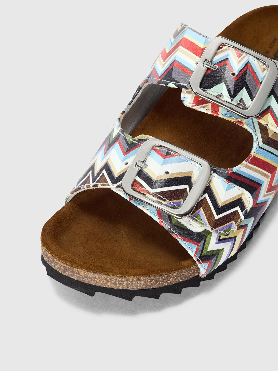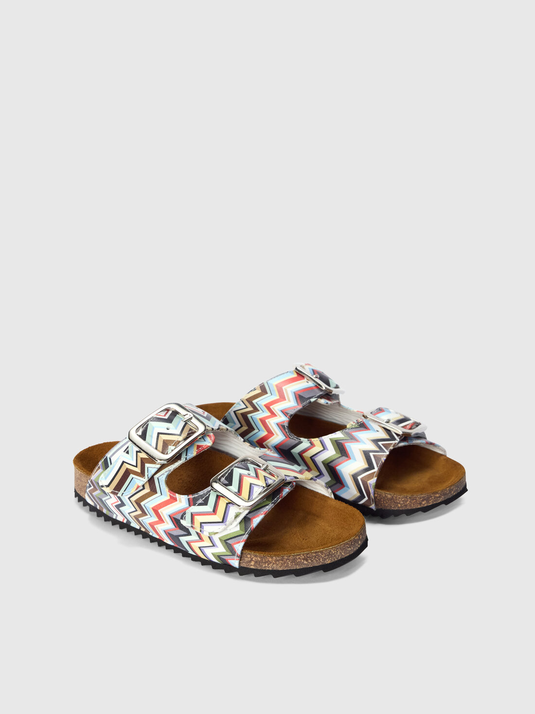The classic double-strap sandals with buckle are renewed with a graphic twist: these boys’ sandals with zig zag print and cork footbed combine comfort and functionality with a fresh, contemporary aesthetic.