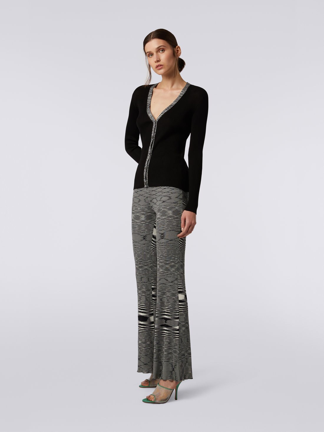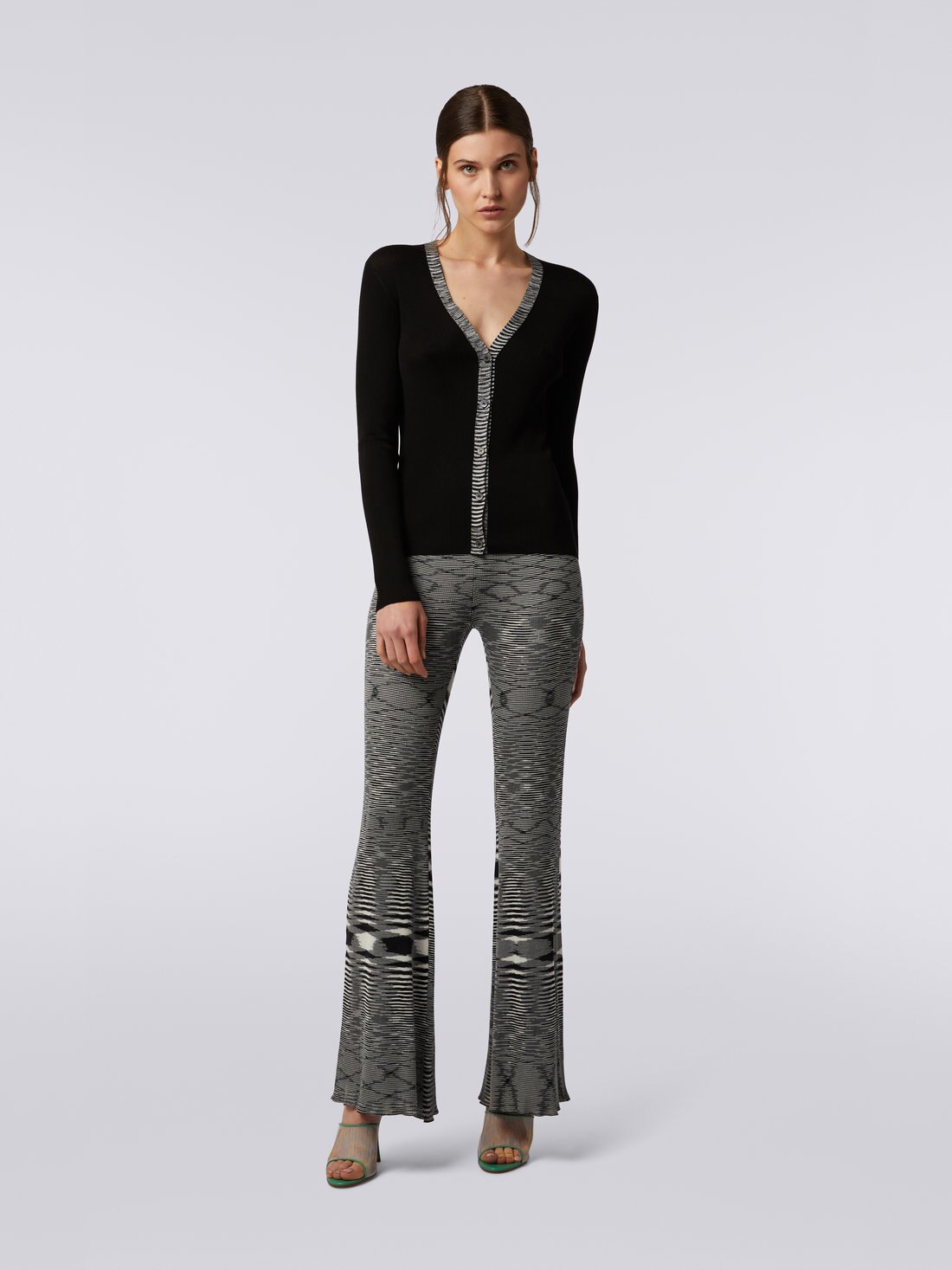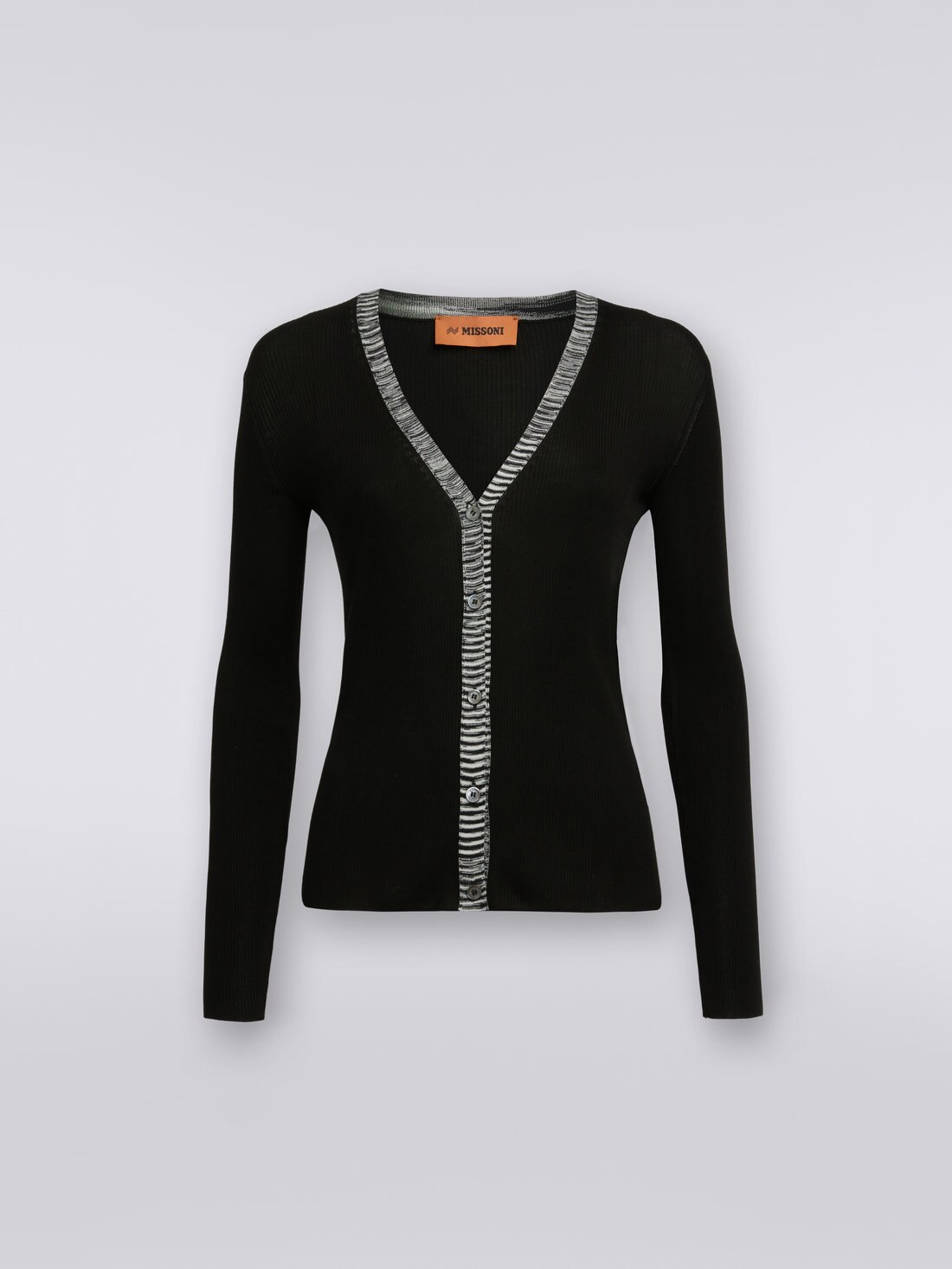 Ribbed silk cardigan with contrasting trim