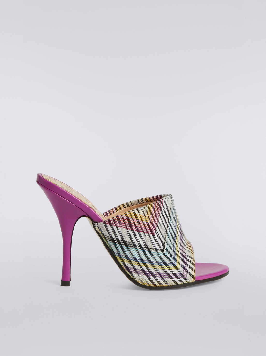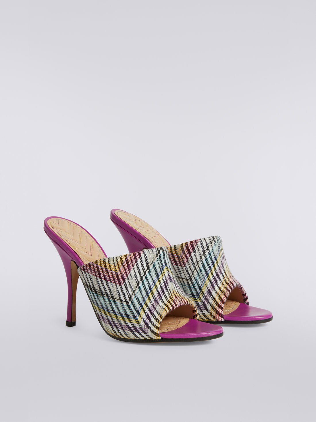 Unabashedly soaring on a stiletto heel in vibrant hues, the women’s mule sandals are quintessentially feminine. The Missoni touch also makes them decidedly refined, thanks to the multicoloured fabric covering with a Caperdoni texture, which combines a zigzag pattern and contrasting stitching.