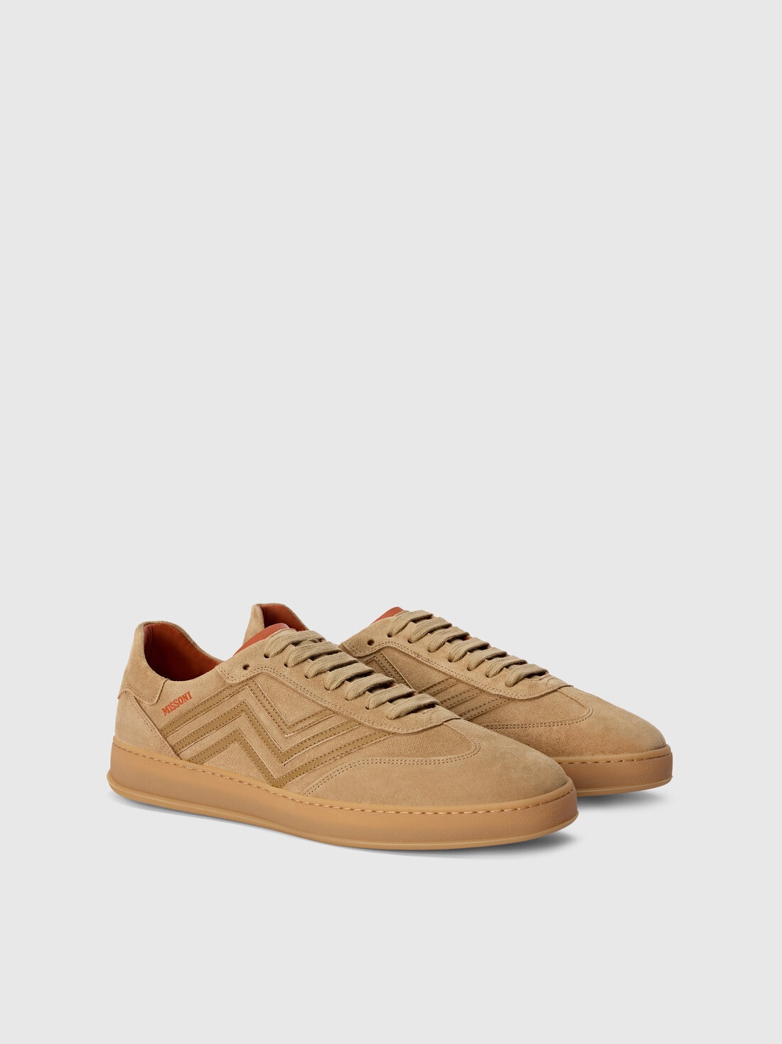 Crafted entirely from suede, this men's sneaker reinterprets a classic style with Missoni’s distinctive touch. It features zigzag detailing and is personalized with contrasting trims and logo lettering.