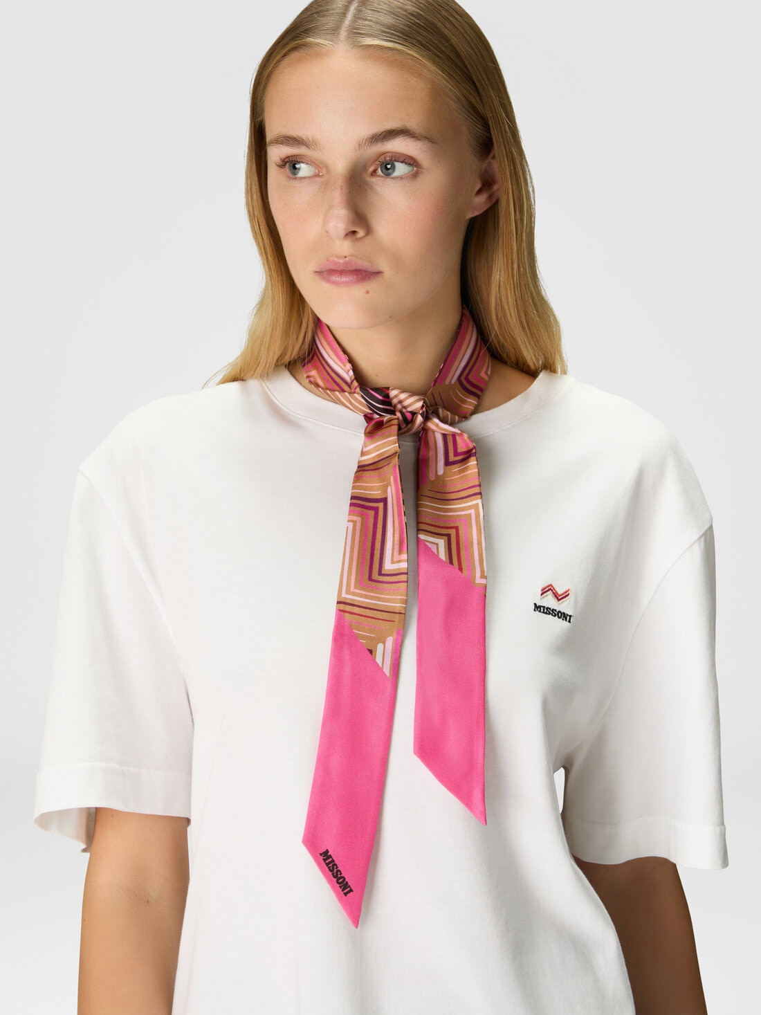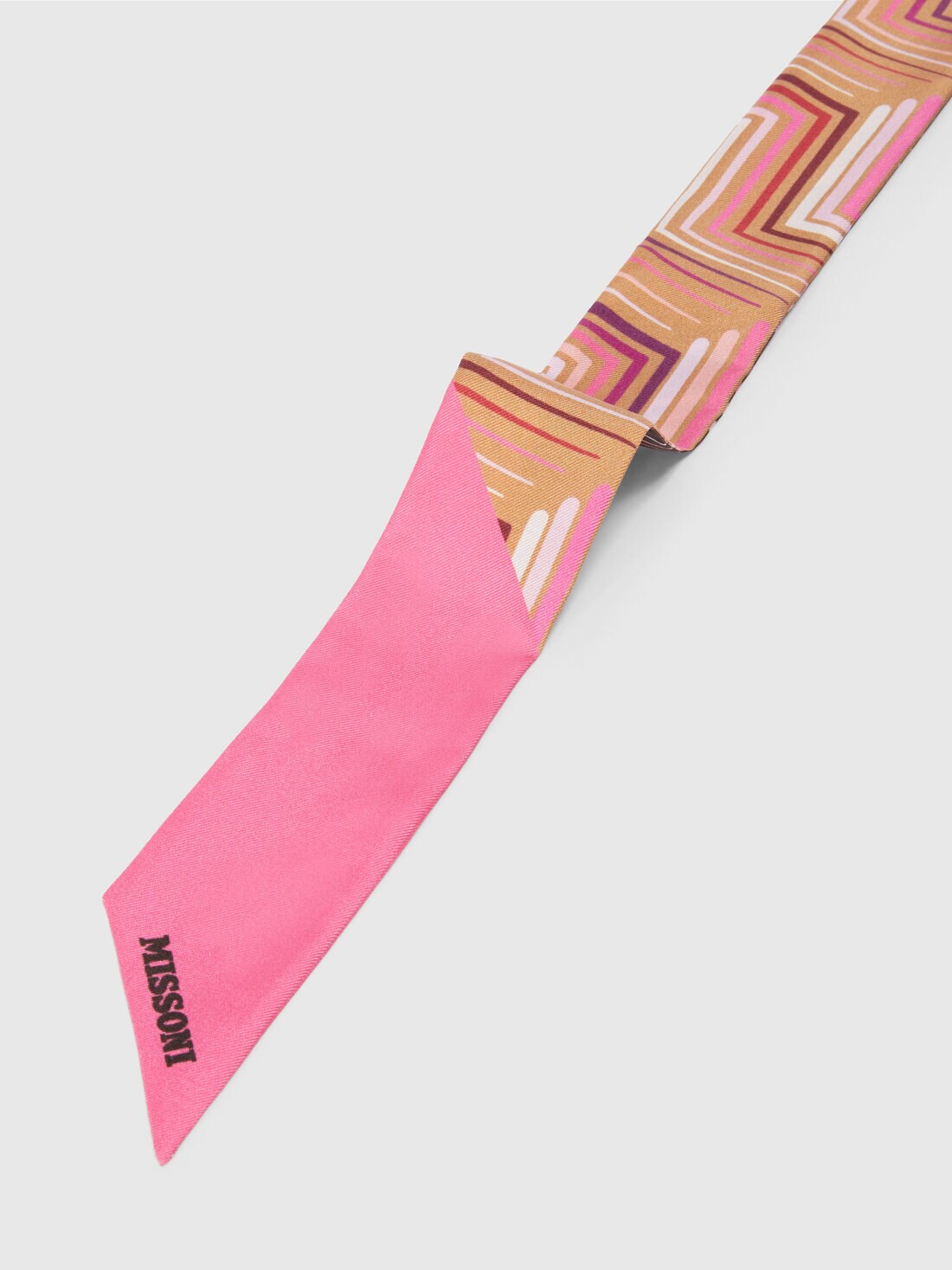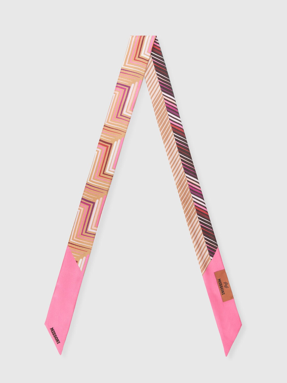 As an accessory for the bag, to be worn around the neck or to give color to the blazer: there are many uses of women's silk twilly. The Missoni version also adds aesthetics to functionality, characterized by the patchwork-effect print with logo writing.