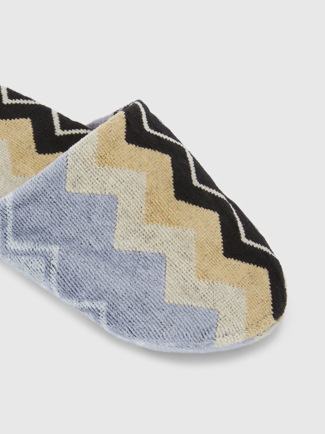 Relaxing in style is the prerogative of the Giacomo slippers by MissoniHome. Made of soft cotton terry, they feature a charming zigzag pattern that adds a distinctive touch of style. Completed by the logo label, the slippers are the perfect accessory for Missoni's signature home outfit.