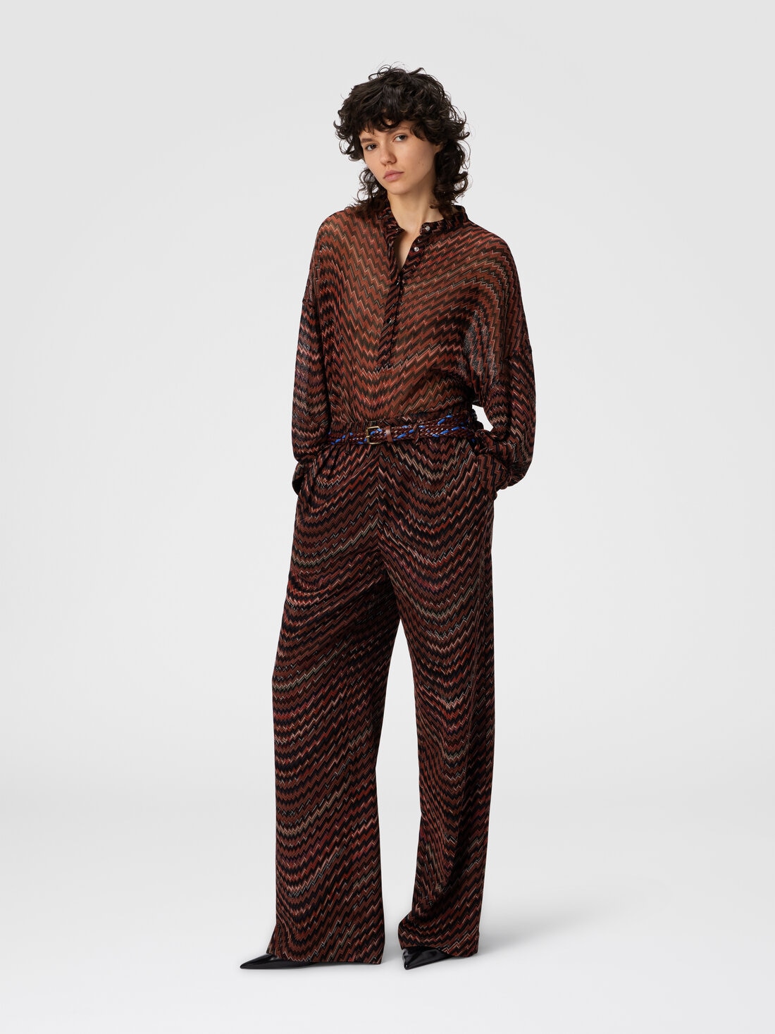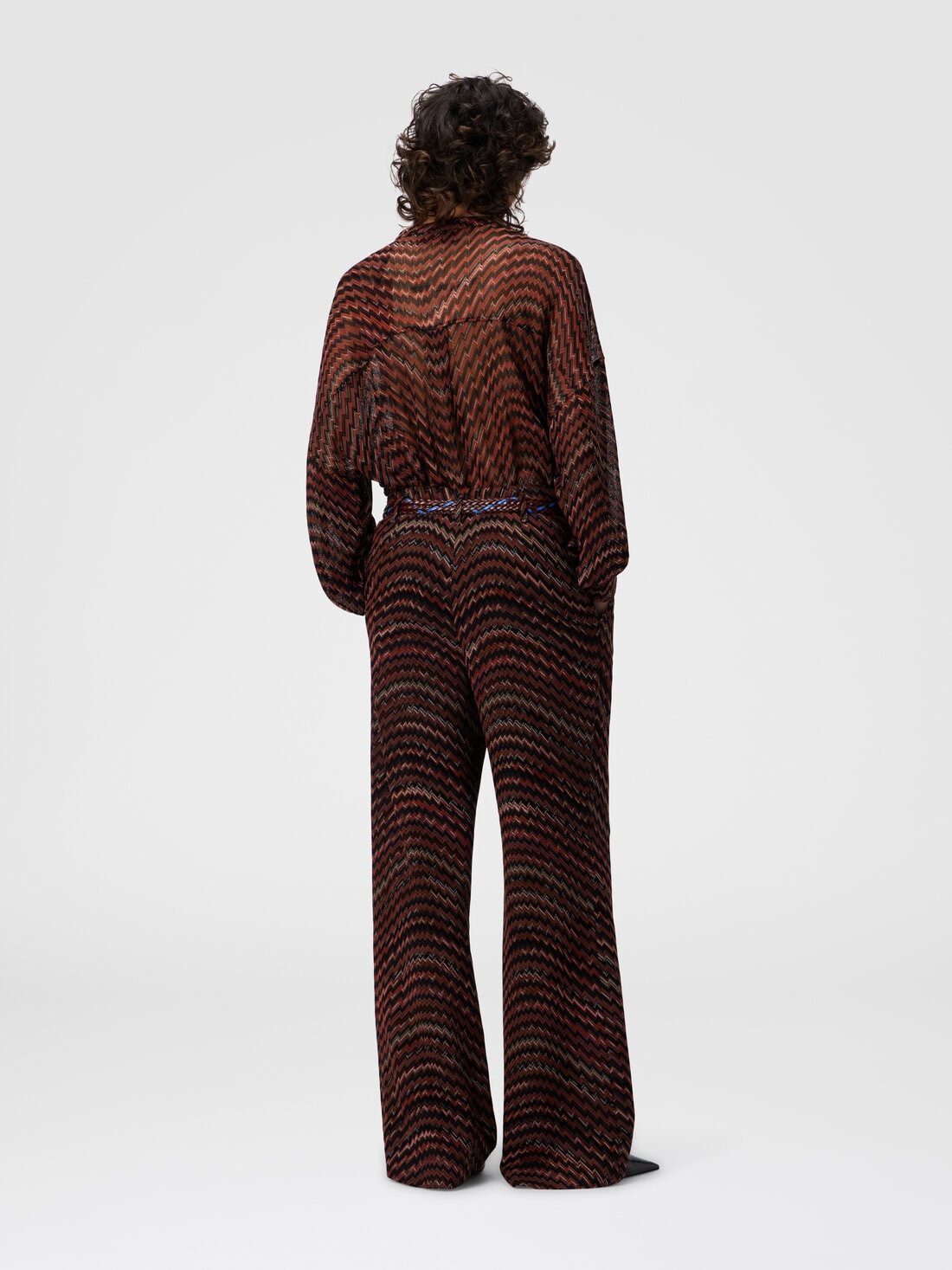 A synthesis of Missoni’s iconic tailoring, this mid-rise women’s trouser is made on a Caperdoni loom with the maison’s signature zigzag, reinterpreted in a dynamic wave version. The blend of viscose and cotton gives structure and softness, for a piece with graphic and unmistakable design.