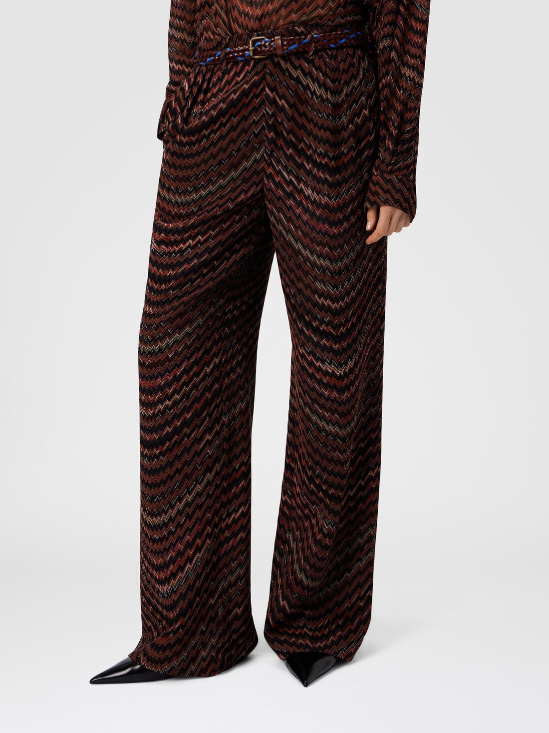 Mid-rise tailored pants with zigzag pattern