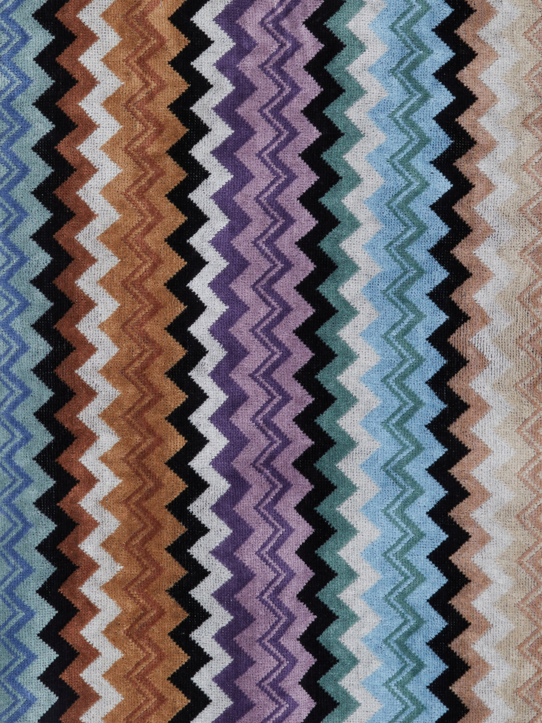 The comfort of the velour cotton terry characterises the Adam hooded bathrobe. This garment immediately shows the distinctive traits of MissoniHome's DNA, enriched by the multicoloured chevron pattern that always gives it its unmistakable touch.