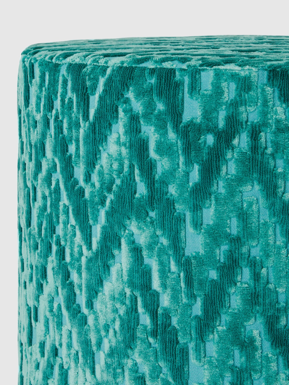 A stylish accessory that enhances the decor of any space, the Fossile pouf is an elegant and sophisticated addition to all interior settings. Featuring a raised chevron print, a cylindrical shape, and dimensions of 40x30 cm, this pouf offers a lively and luminous texture that captures the light, adding depth and movement to the room.