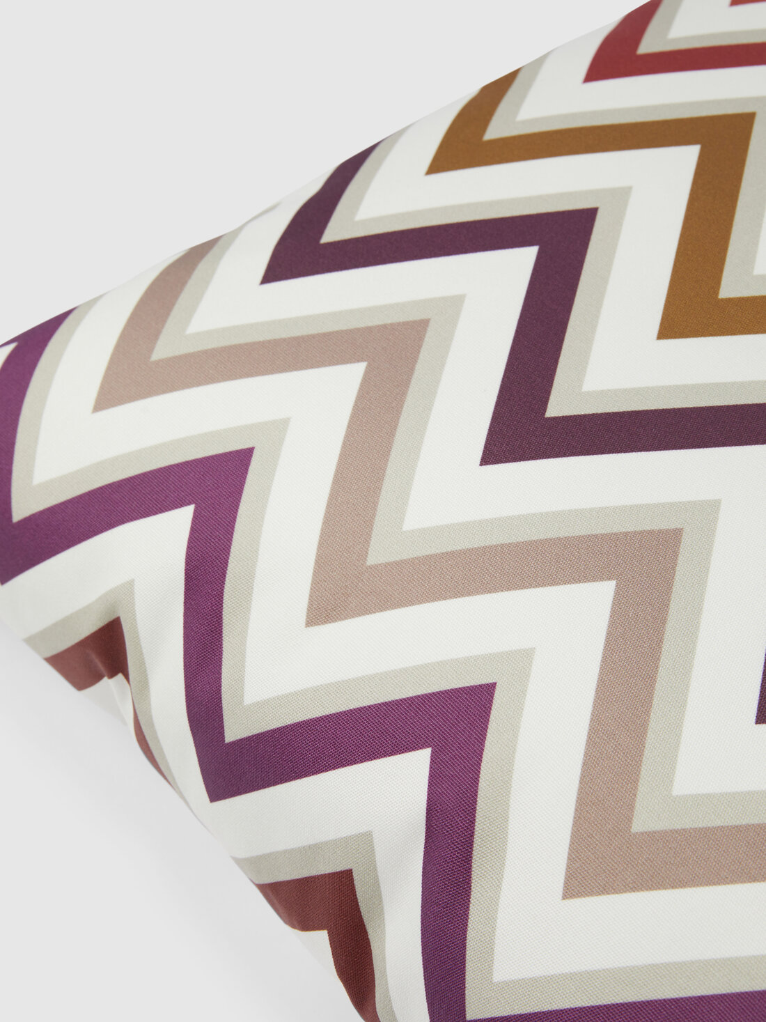 The Watamu cushion, in its generous 60x60 cm dimensions, is designed to enhance outdoor spaces with style and comfort. The durable technical fabric surface is brought to life by the iconic zigzag pattern, reinterpreted in a dynamic and sophisticated palette. Designed to offer practicality without sacrificing elegance, it is finished with a logo label, a distinctive mark of Missoni's unmistakable aesthetic. A perfect décor piece to add character to outdoor settings.