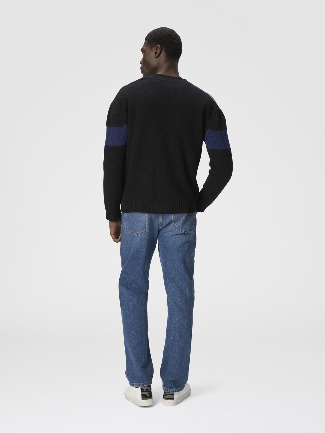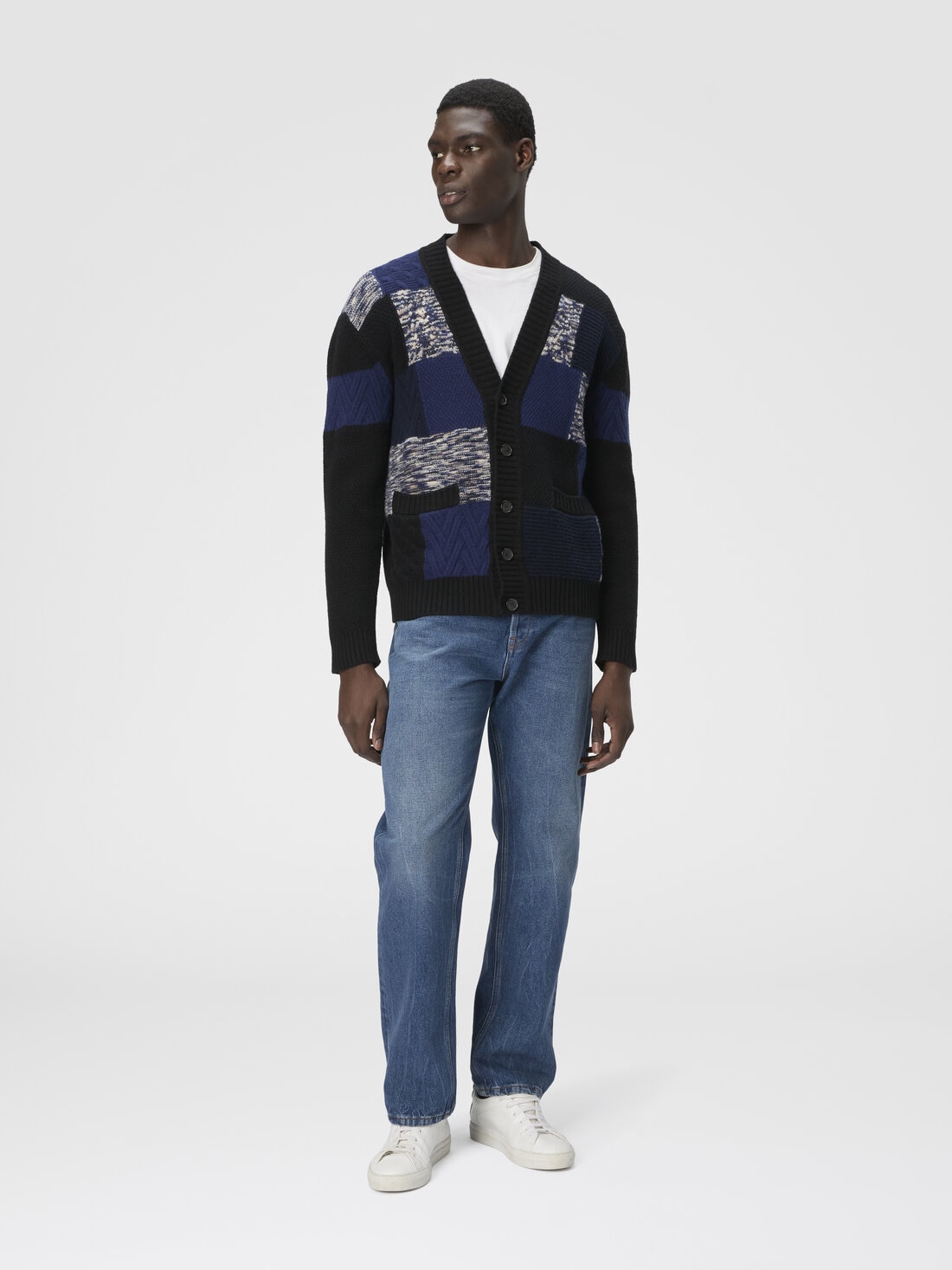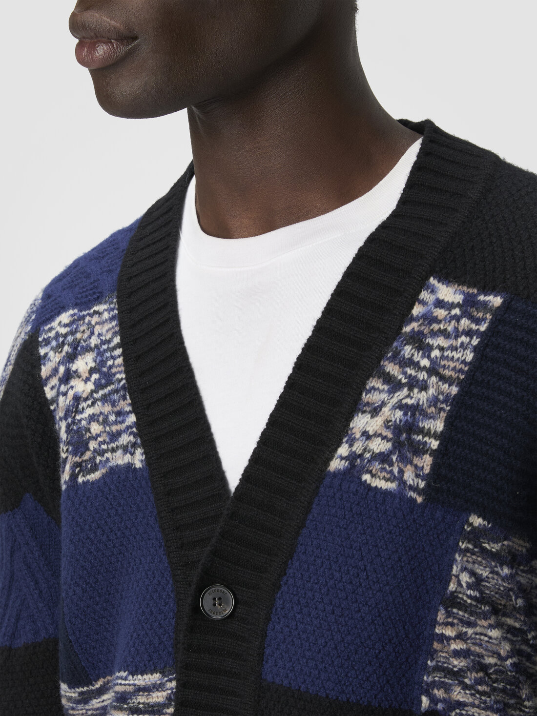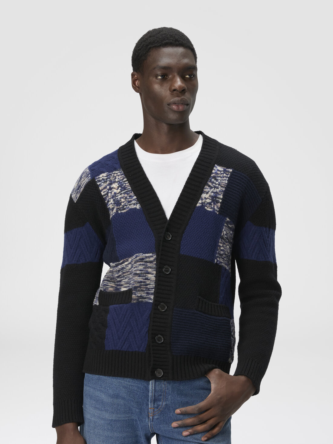An expression of craftsmanship and iconic style, this men’s button-up cardigan by Missoni is made of wool with rich multi-stitch workmanship that creates a tone-on-tone color block effect. Slubbed inserts and details that recall the brand’s signature zigzag add depth and movement, resulting in a sophisticated and recognizable piece, perfect for those seeking comfort and character.