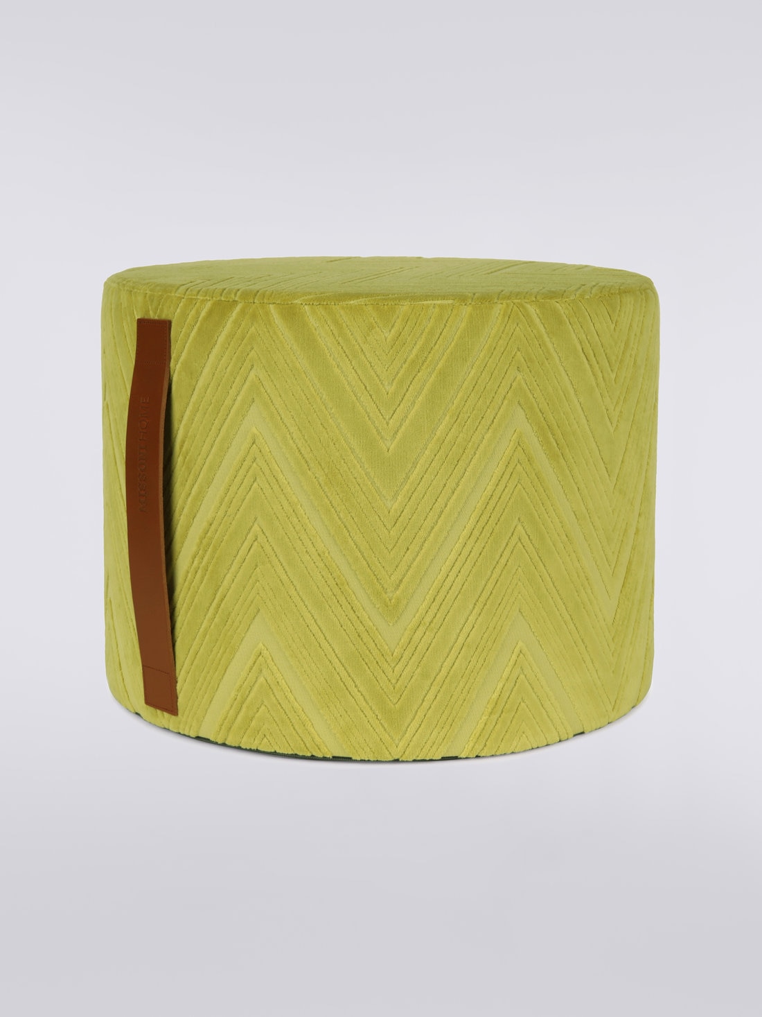 The 40x30 cm Basel cylindrical pouffe is made of dévoré cotton chenille with a chevron pattern. This accessory will significantly increases the comfort of every room of your home, with the added surplus of practicality provided by the logo-imprinted leather handle.