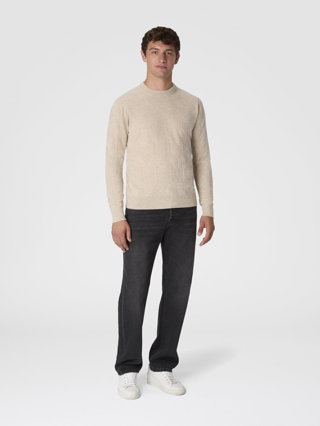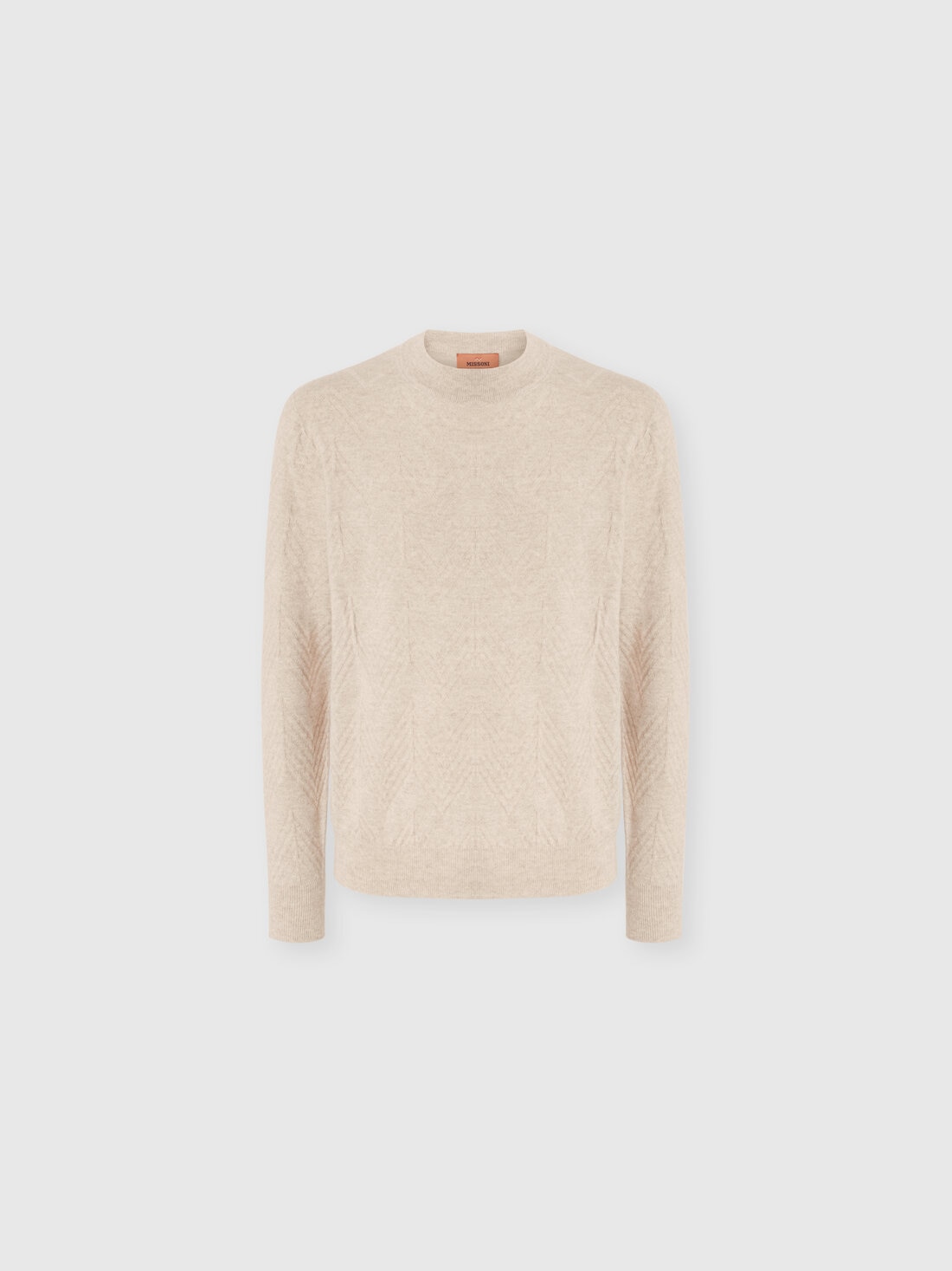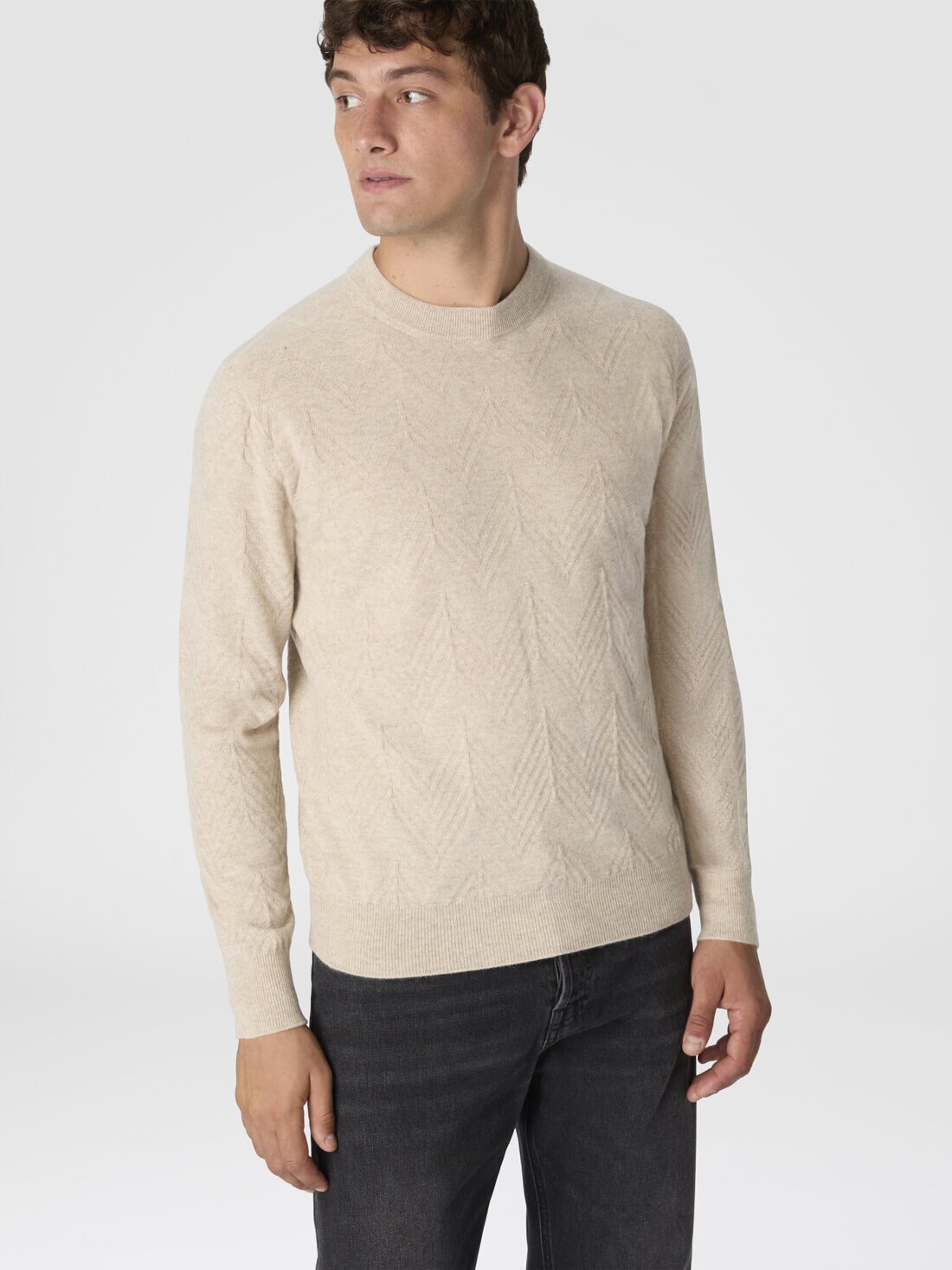Crew neck sweater in pure cashmere with chevron pattern