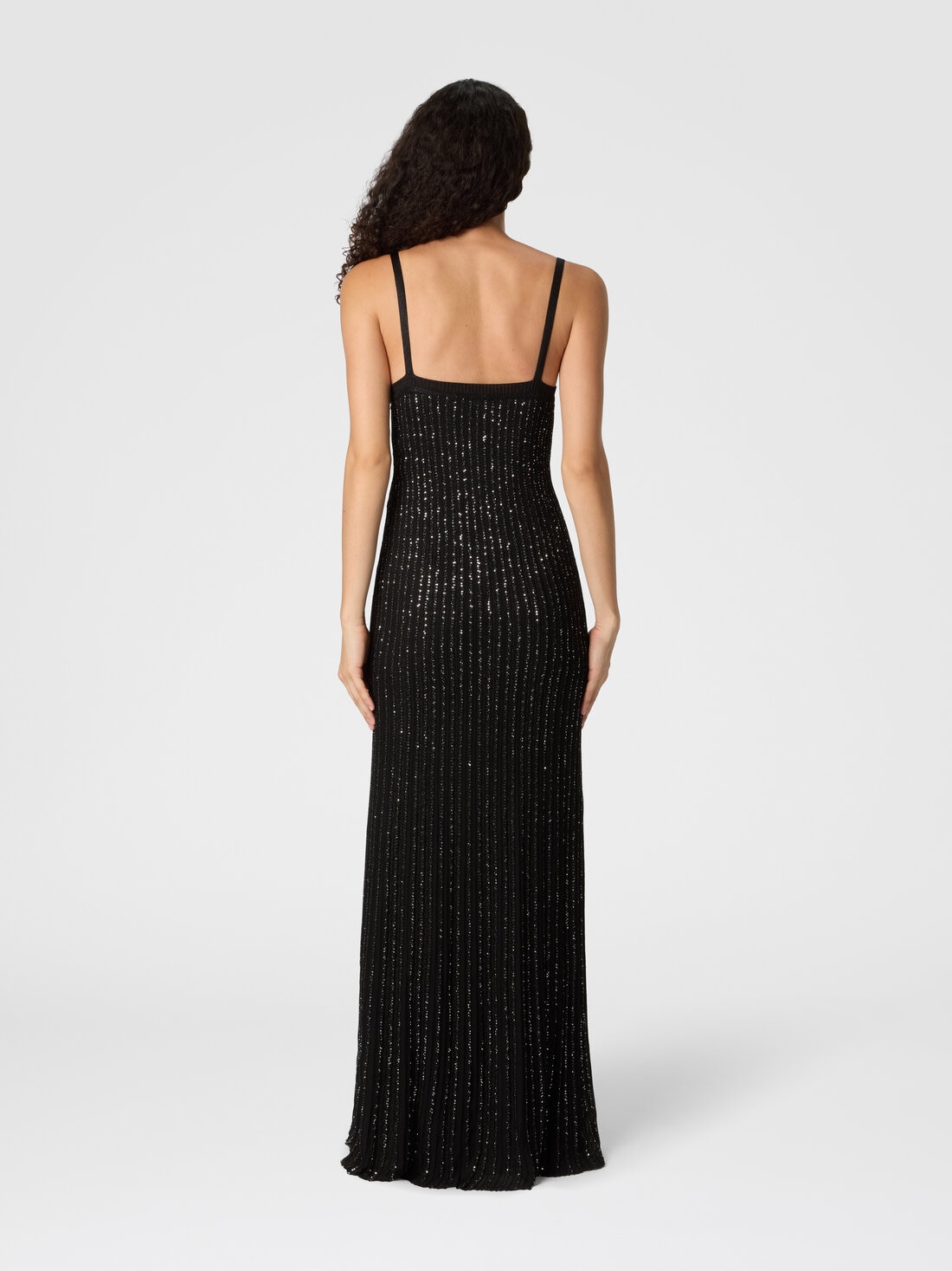 Sleeveless Mixed Viscose Lamé Gown with Sequins