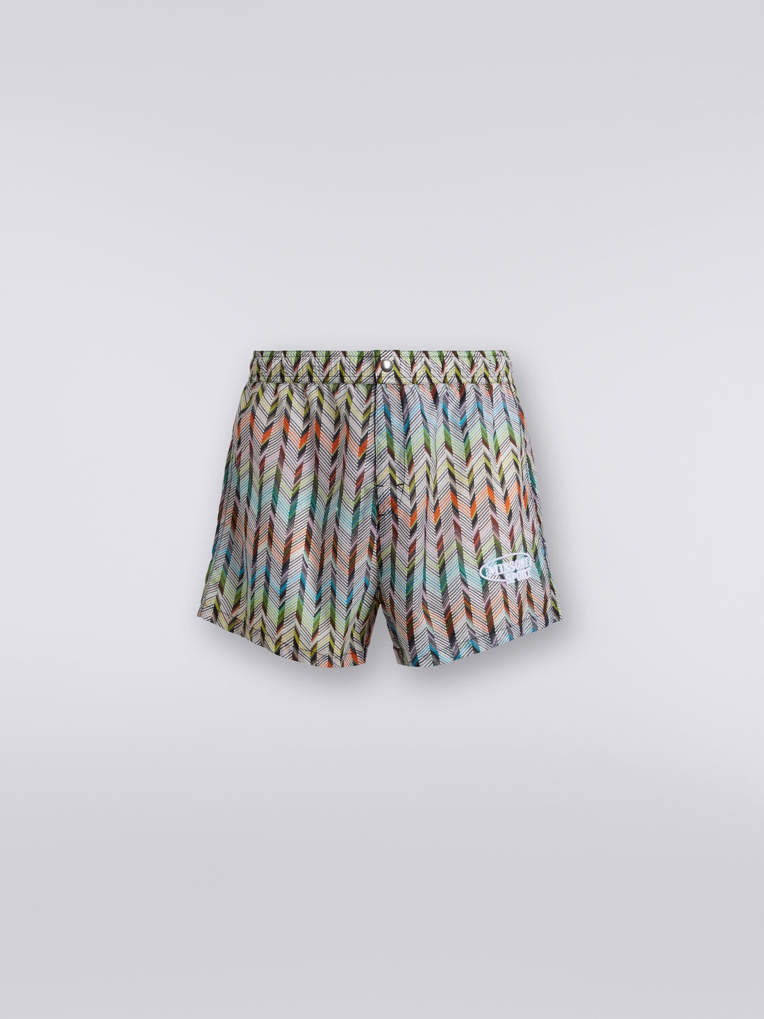 Made of zigzag print nylon with a Caperdoni pattern, the men’s swim shorts are customised with a contrasting embroidered logo, which adds a touch of refined exclusivity to these shorts that are perfect from the beach to the spa.