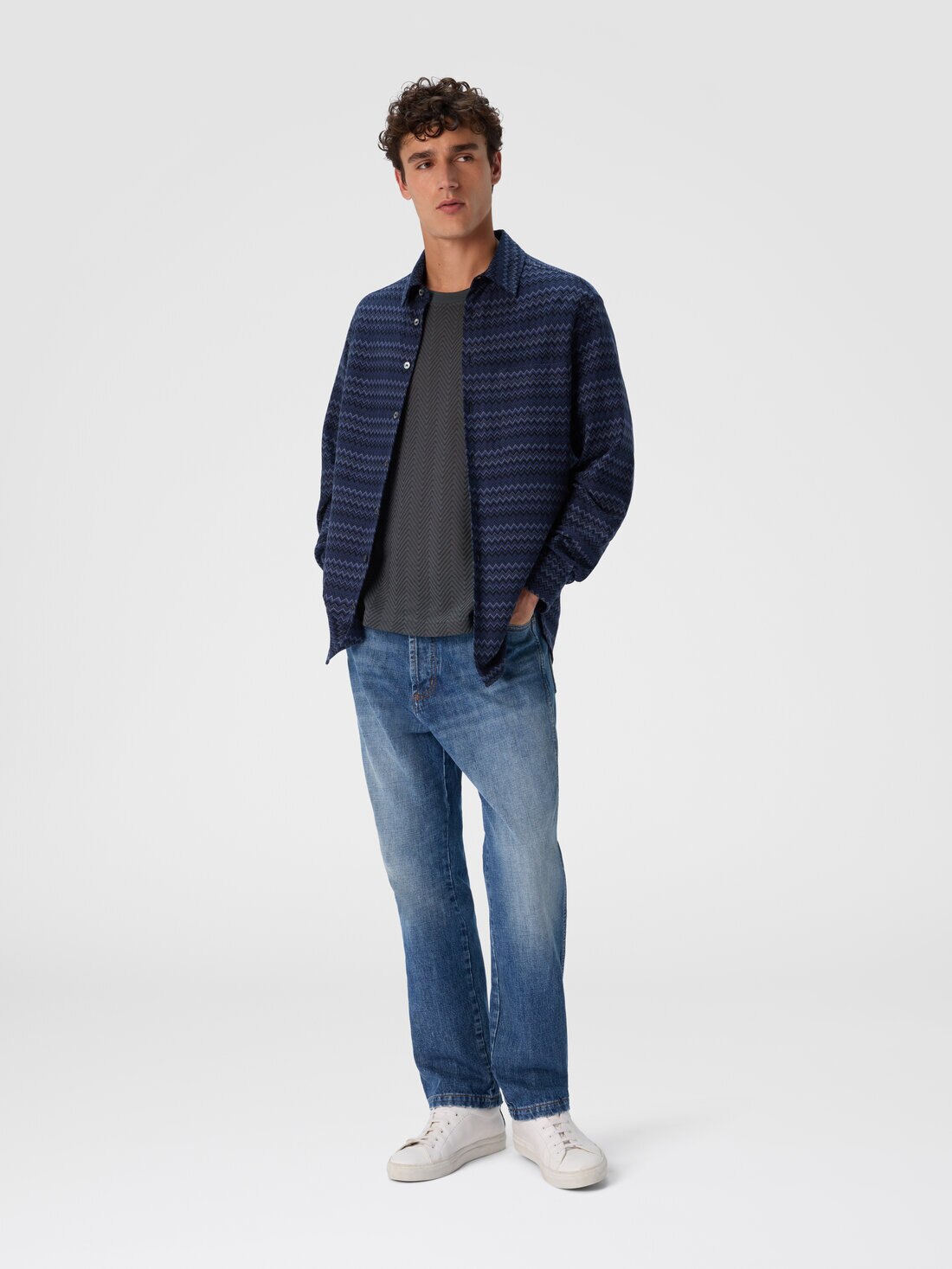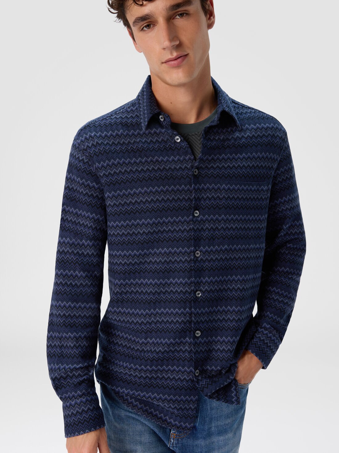 Missoni’s savoir-faire comes to life in this men's long-sleeve shirt, characterized by refined raschel workmanship with tone-on-tone micro zigzag in 100% cotton. A piece that expresses the brand’s artisanal excellence, for a distinctive and sophisticated look, perfect for those seeking discreet and timeless elegance.