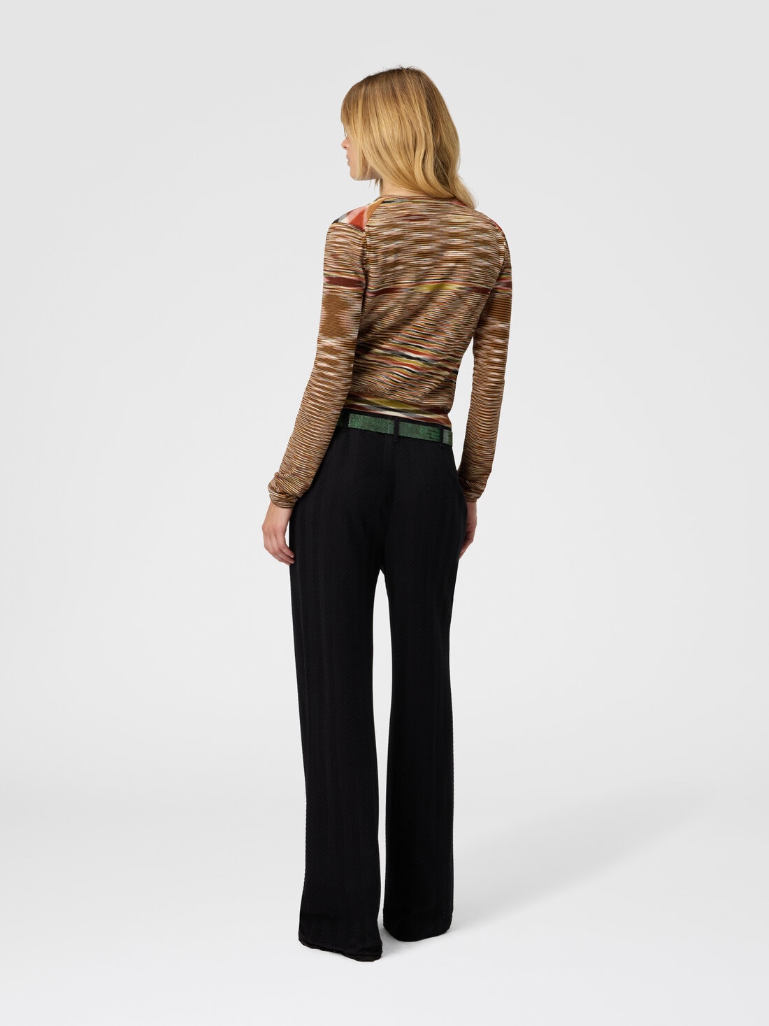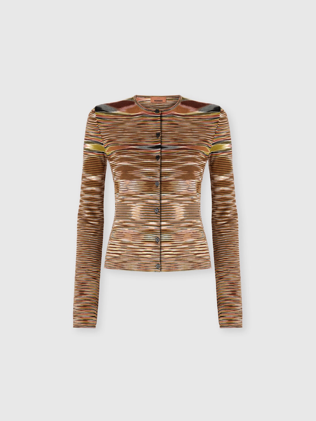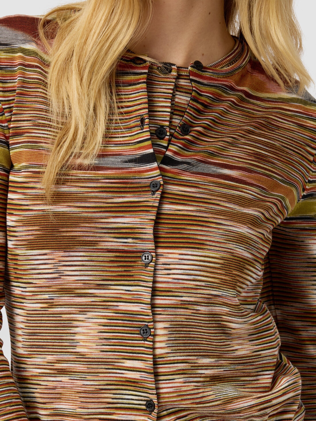 Short crew-neck buttoned cardigan for women, made of slubbed smooth wool blend knit. The compact design and unique knit texture give the garment a distinctive character, ideal for adding a touch of informal elegance to any outfit.