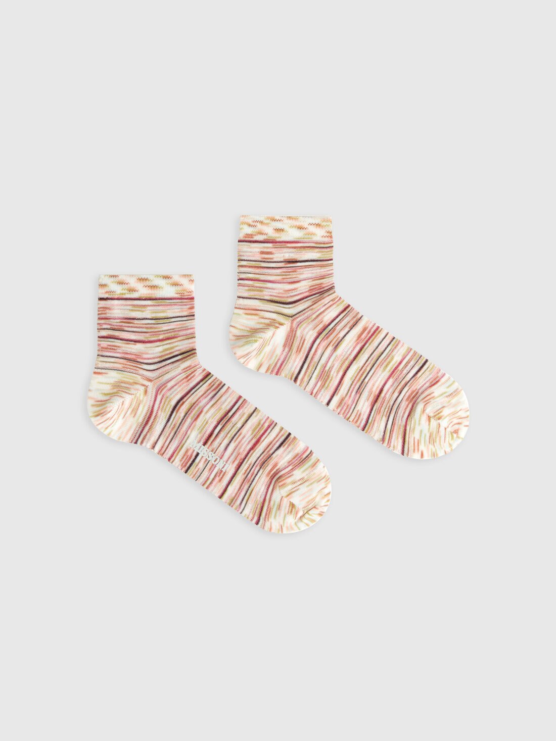 Missoni also brings its touch to the essentials of the daily look, as in the case of women's short socks. Made of cotton and nylon knit, they boast the refined slub pattern. They are the perfect addition to complete the daily outfit with a touch of sophistication.