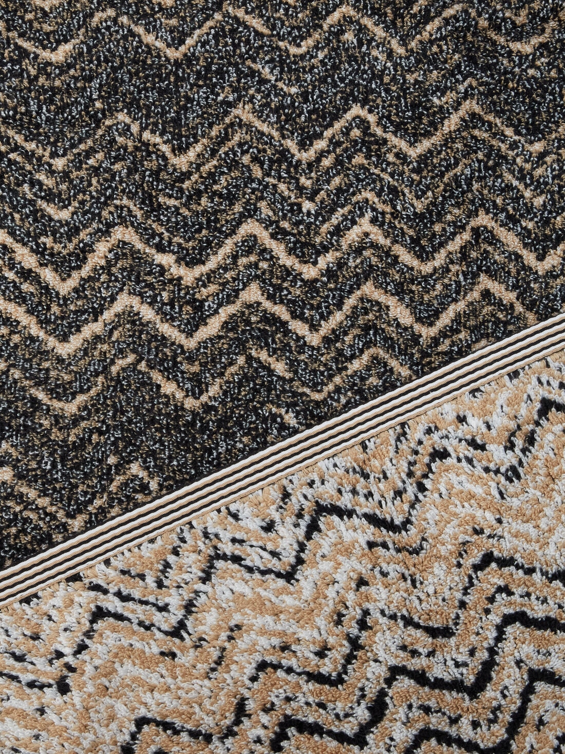 The Azul 150x100 cm towel in terry cotton declares its belonging to the MissoniHome universe with its chevron pattern. Fantasy and colour give rhythm to home linen with a recognisable sense of style.