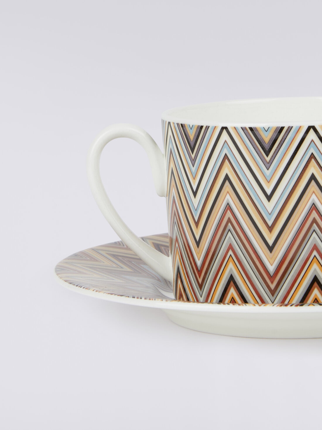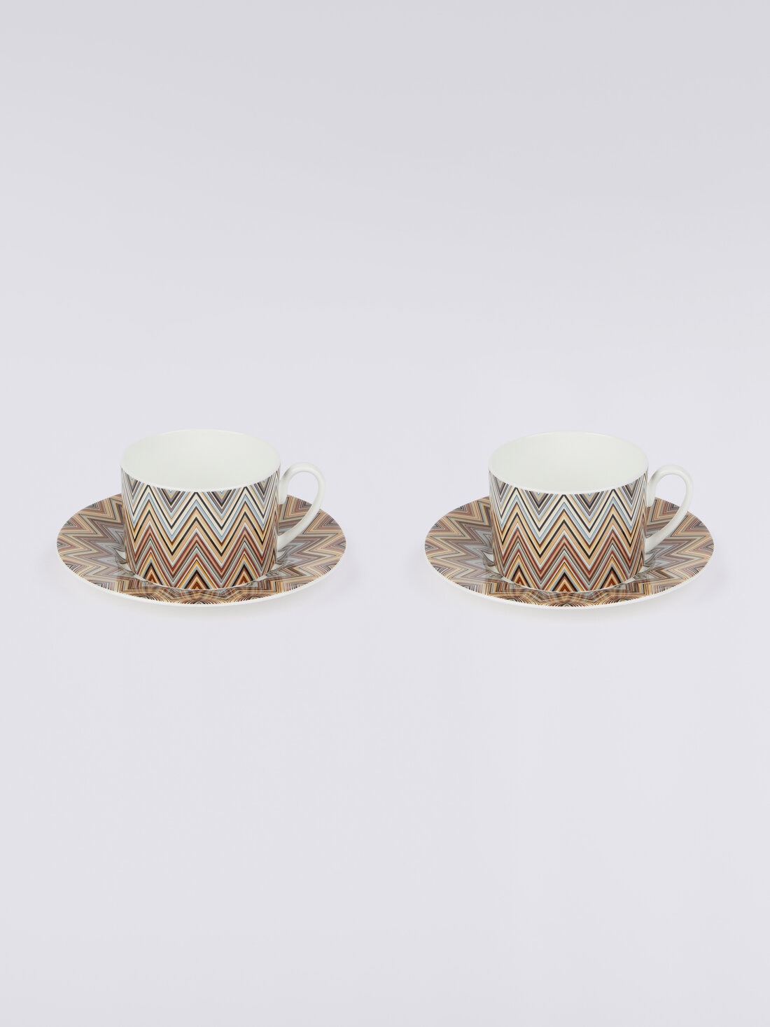 A pair of teacups to add a touch of sophistication to your afternoon break. Jarris's zigzag pattern lends a recognisably cheerful touch to the two-piece set complete with saucer, presented in an elegant branded box.