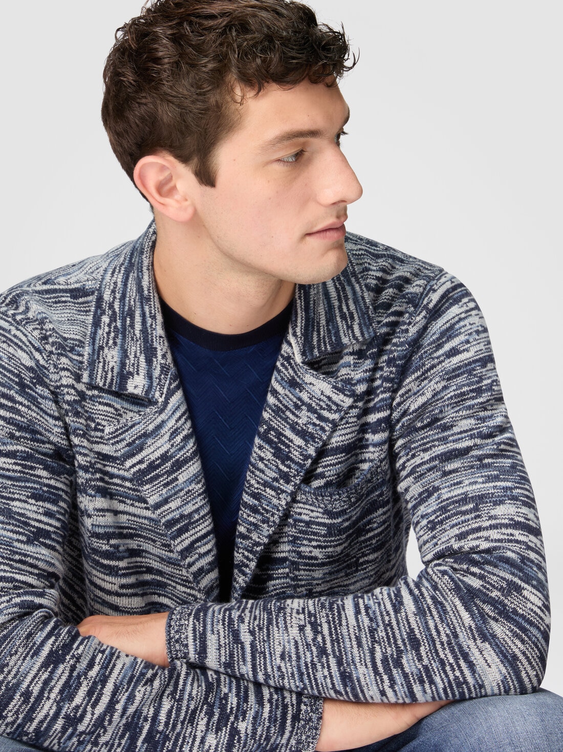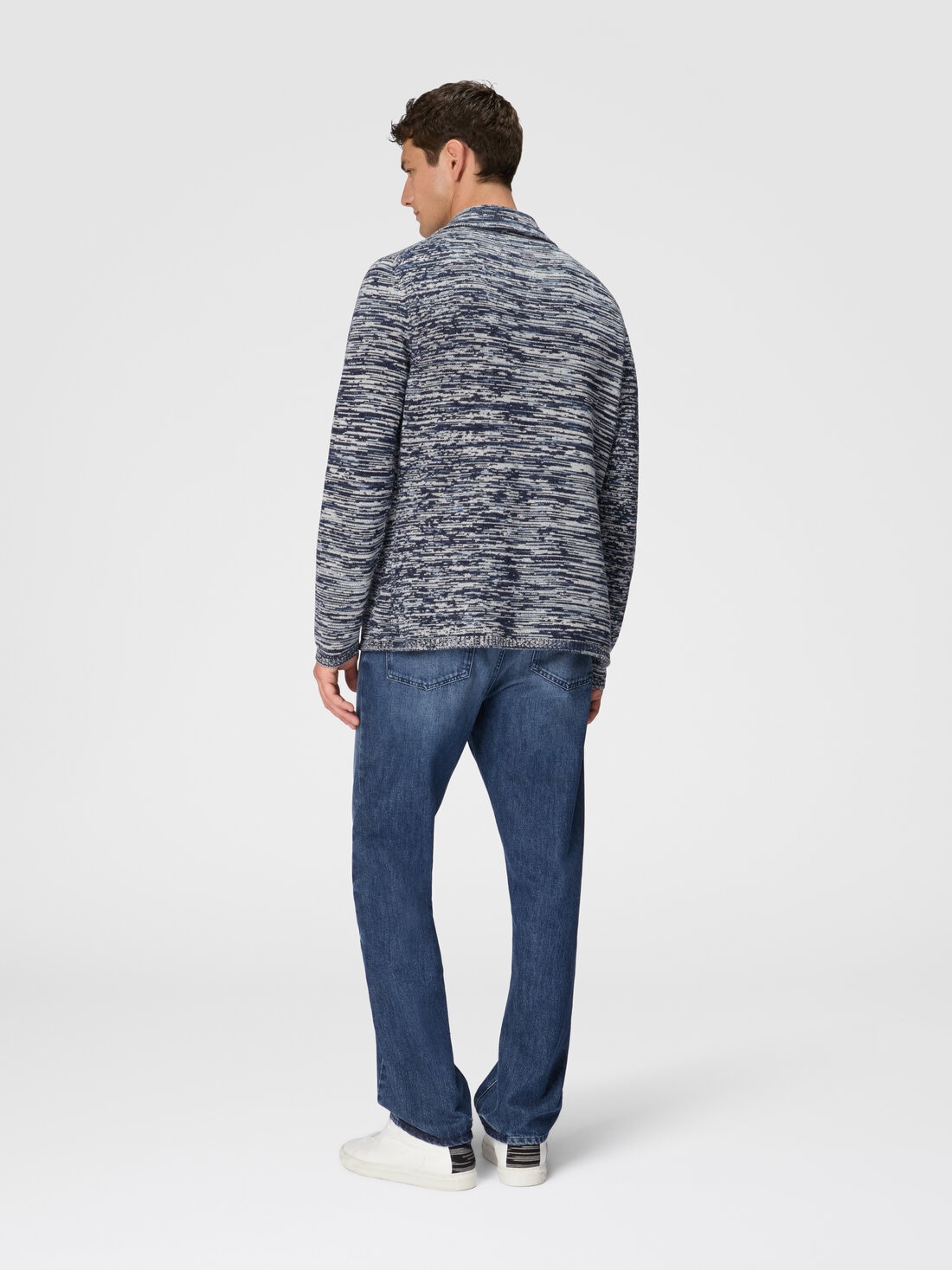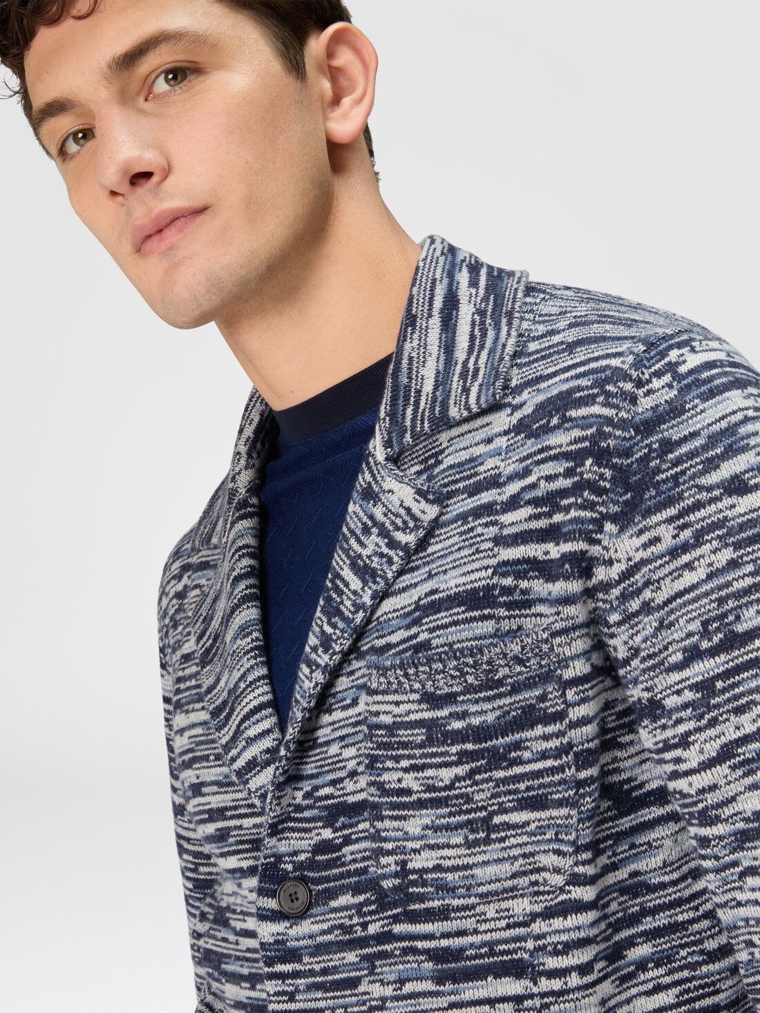 The luxurious embrace of pure cashmere gives the unstructured blazer a surplus of preciousness. While the slub motif of the jersey guarantees recognisability to this model with three personalised buttons, patch pockets and a breast pocket.