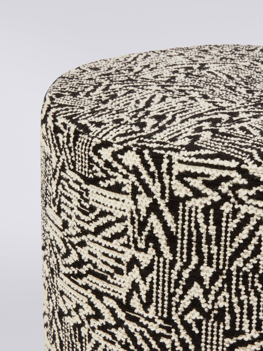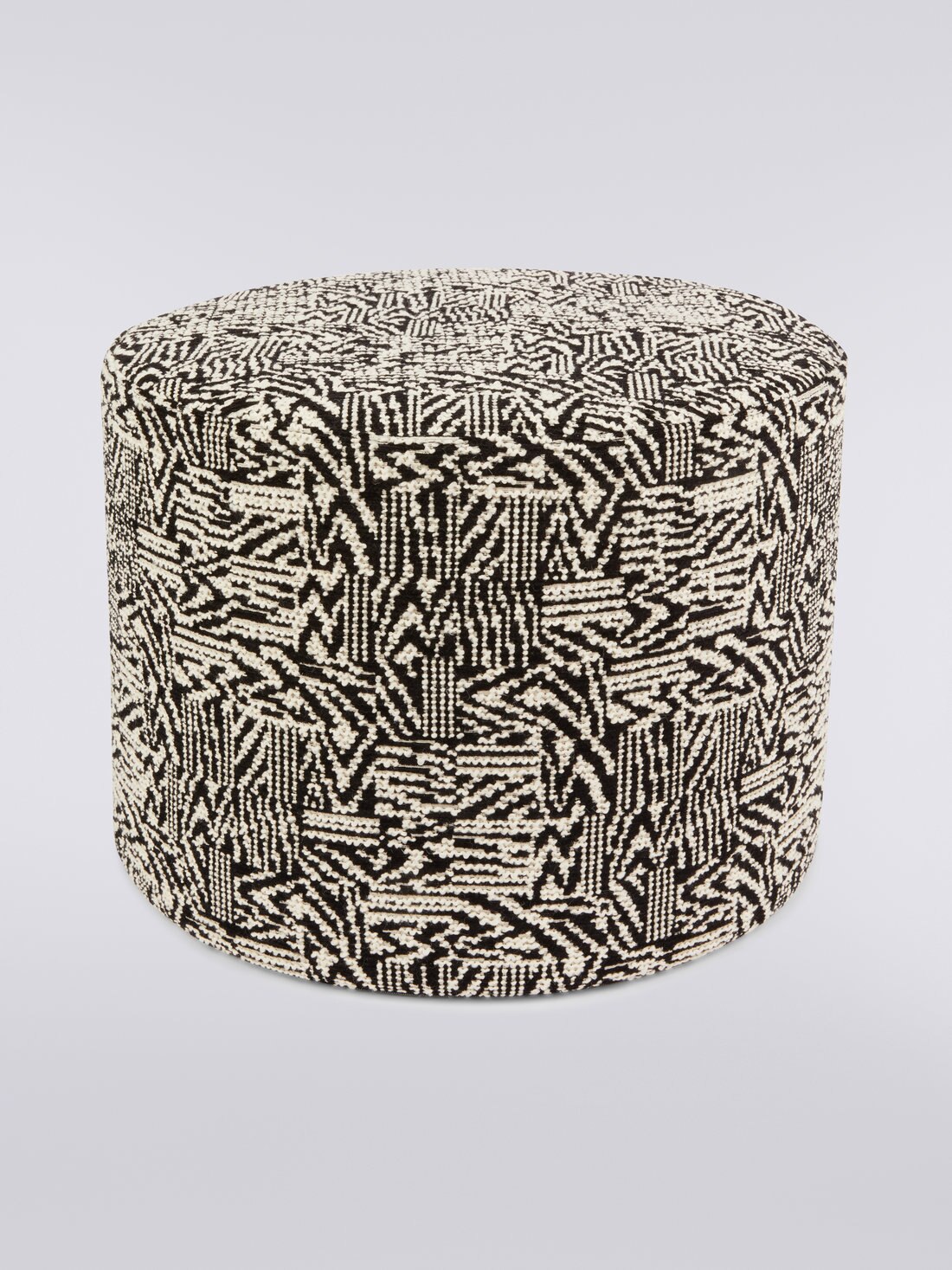 The Noise 40x30 cm cylindrical pouffe features textured, bouclé-effect fabric. This home accessory has the ability to showcase one of Missoni's best-selling patterns – the patchwork. It does so with an incredibly elegant and clean touch, making it a perfect fit for any home setting.