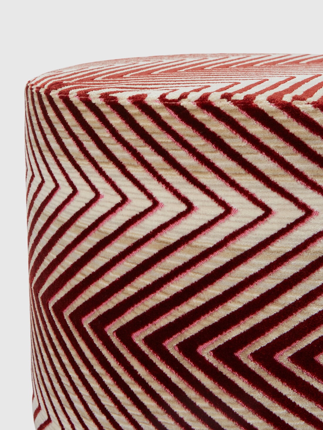 An unusual zigzag pattern with an almost hypnotic sequence characterises the upholstery of Ziggy, a cylindrical pouffe measuring 40x30 cm. An accessory of undeniable charm to personalise every corner of your living area.