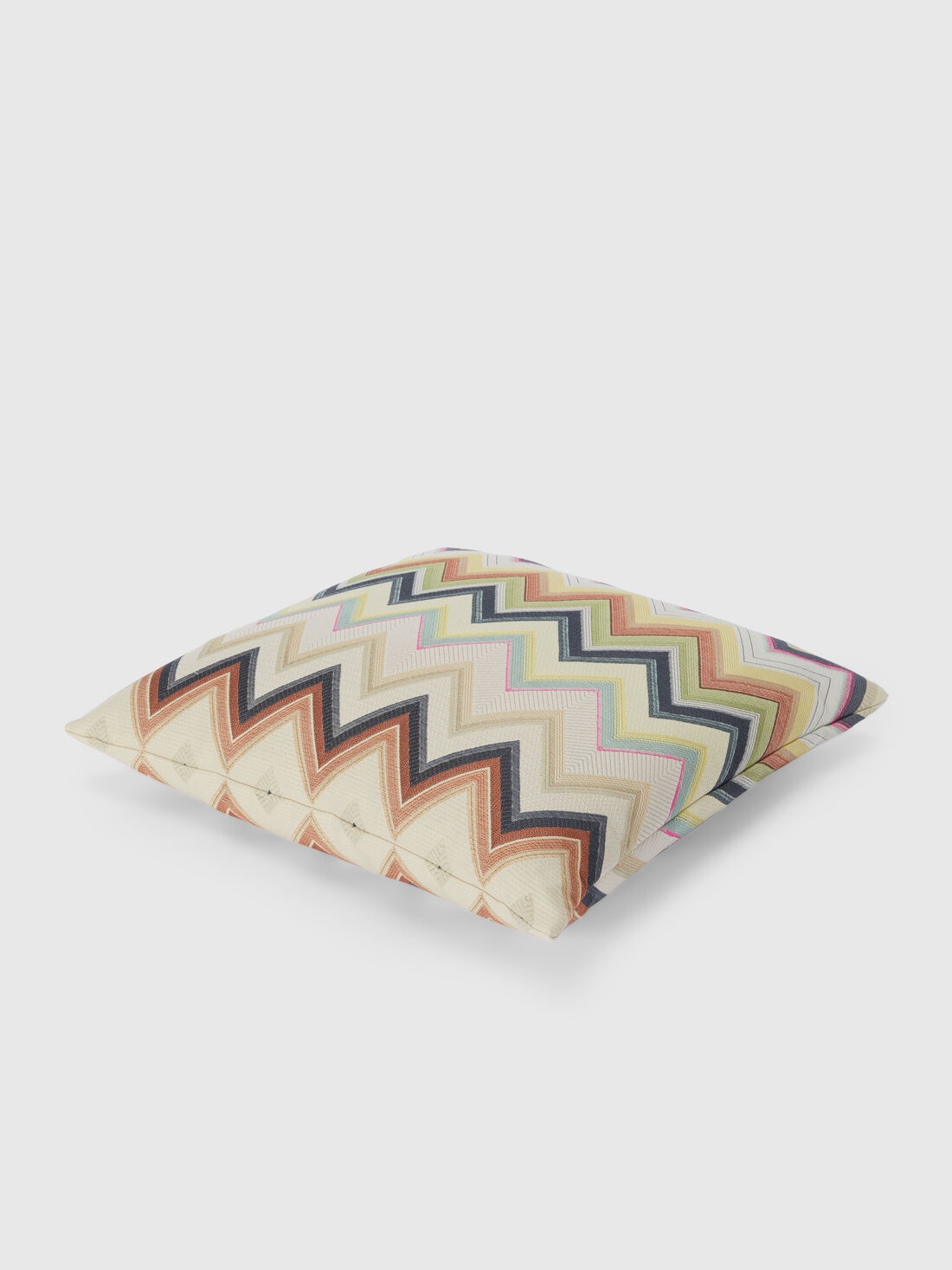 The cheerful juxtaposition of neutral tones and bright colours characterises the chevron pattern of the Agadir 40x40 cm square cushion. This is just the furnishing accessory you needed to give a vibrant touch to all the rooms of your home.