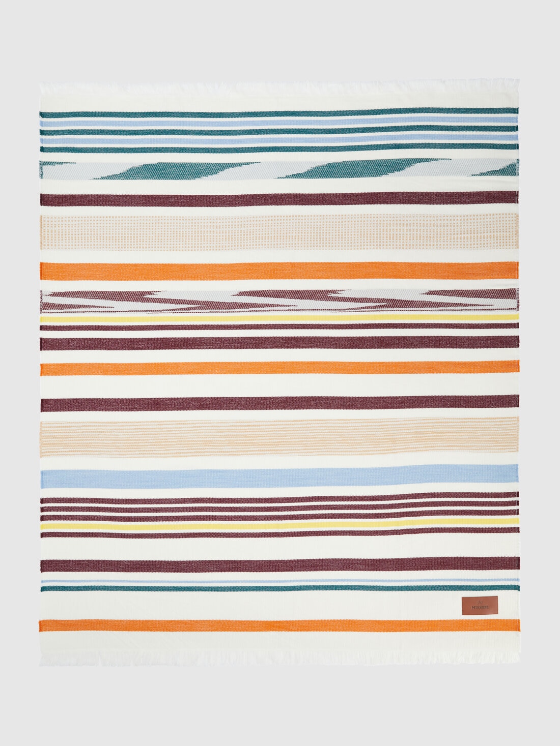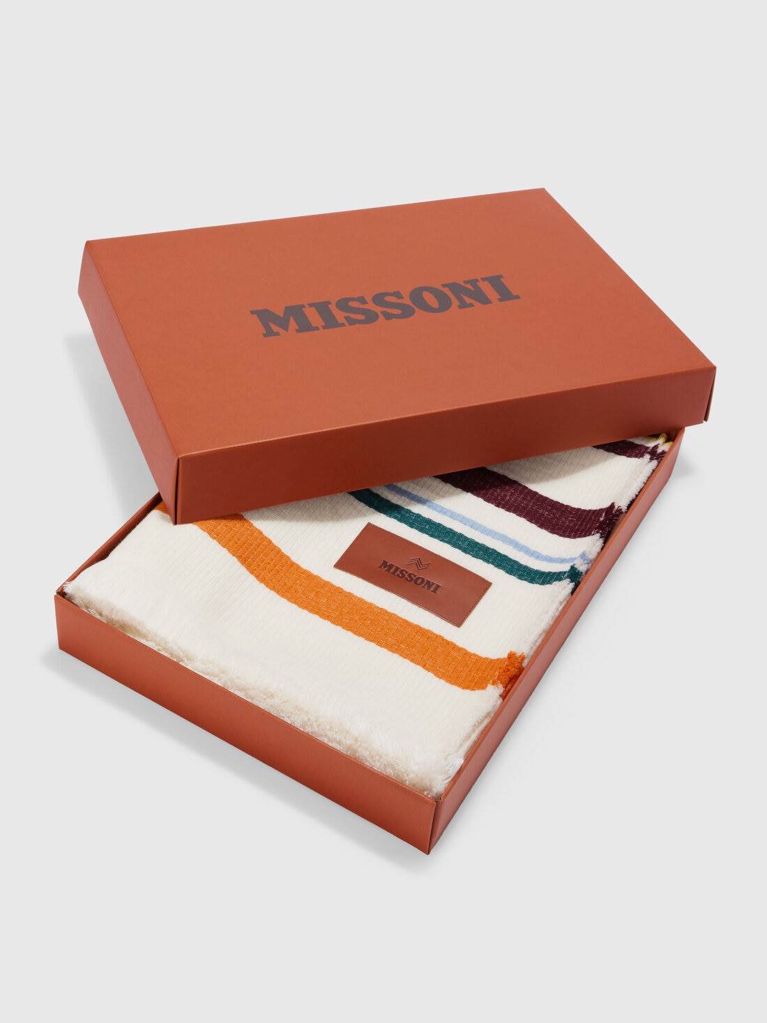 The Biarritz plaid, made from 100% wool and measuring 160x190 cm, is the perfect balance of comfort and design. Its irregular stripe pattern creates an eccentric and dynamic interplay of shapes, adding a touch of originality and vibrancy to any space. Ideal for wrapping yourself in the warmth of wool, it brings a bold yet sophisticated accent to your home, reflecting Missoni’s unmistakable style and timeless quality.