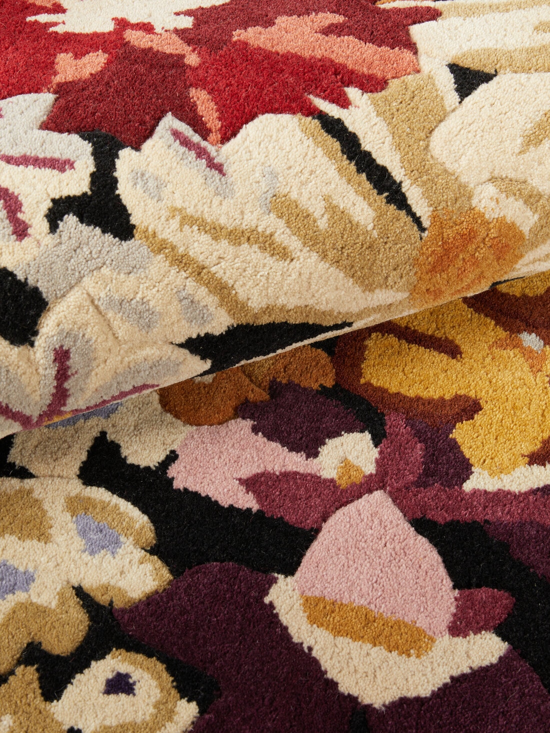 With Luanda, a rectangular 200x300 cm wool carpet, it will seem as if you're placing your feet on a bed of flowers and leaves. Enlivened by vibrant neutral tones and vitamin colours, this furnishing accessory features an all-over floral pattern. The logo label completes it.