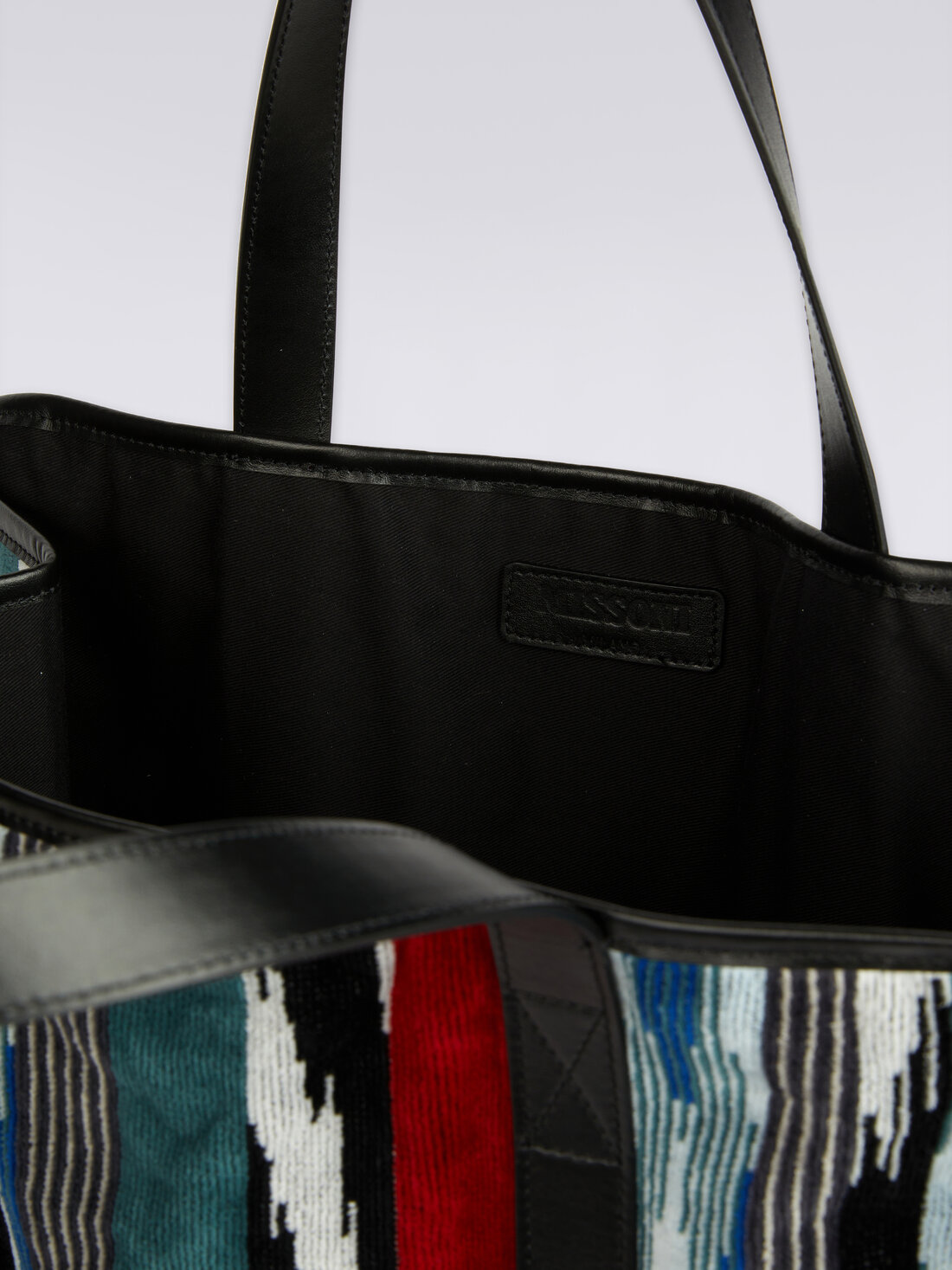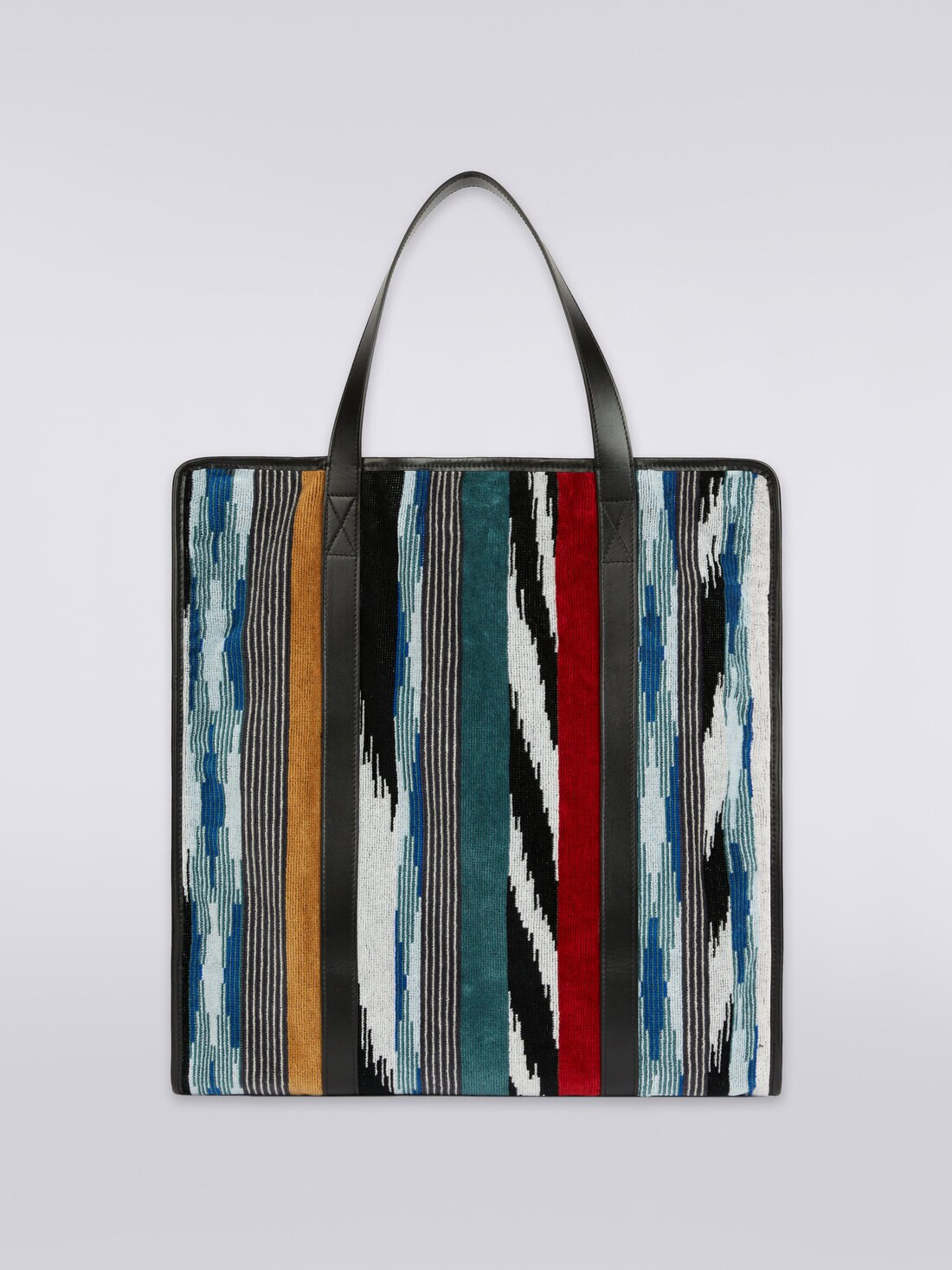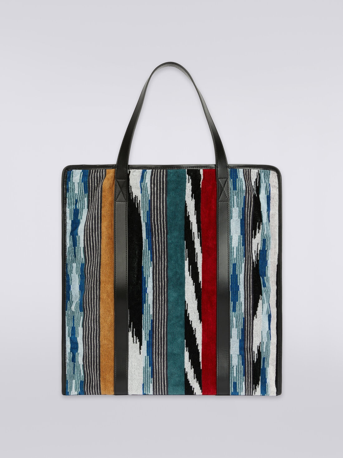 Practical and capacious, the Clint bag by Missoni is the ideal accessory for storing the most diverse objects and bringing order and style to your home in one single gesture. The cotton terry model, which alternates a slub pattern with colour block stripes, has leather handles and borders and is contained in a distinctive branded dust bag.