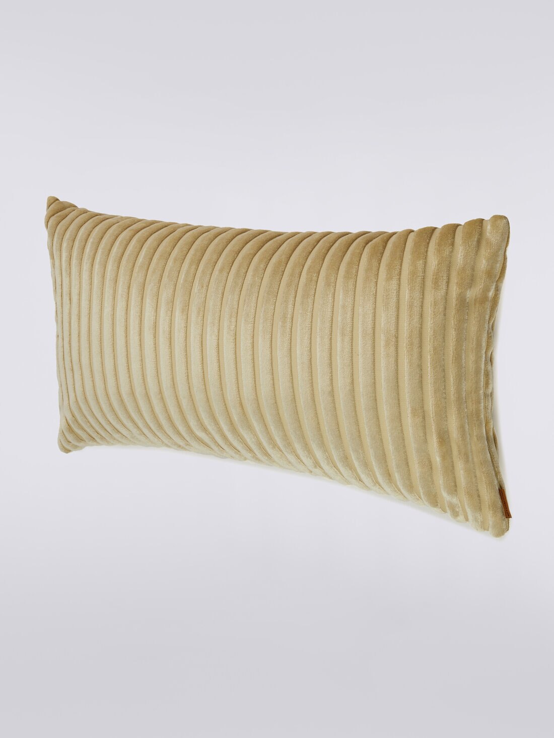 The Coomba 30x60 cm cushion features a striped relief pattern, alternating smooth fabric with chenille-effect stripes. Made of a viscose and cotton blend, this discreet home accessory will add a touch of elegance to any room.