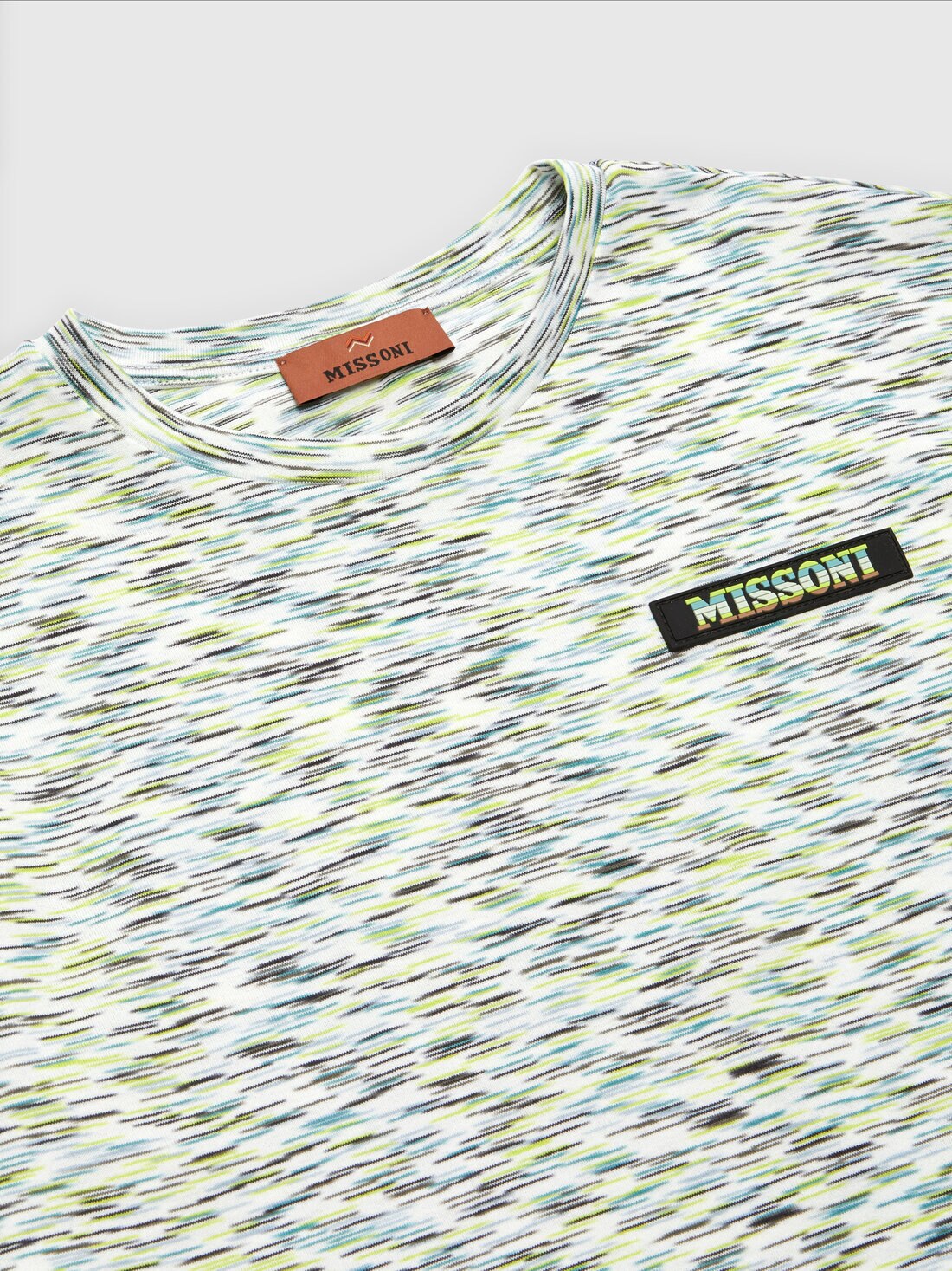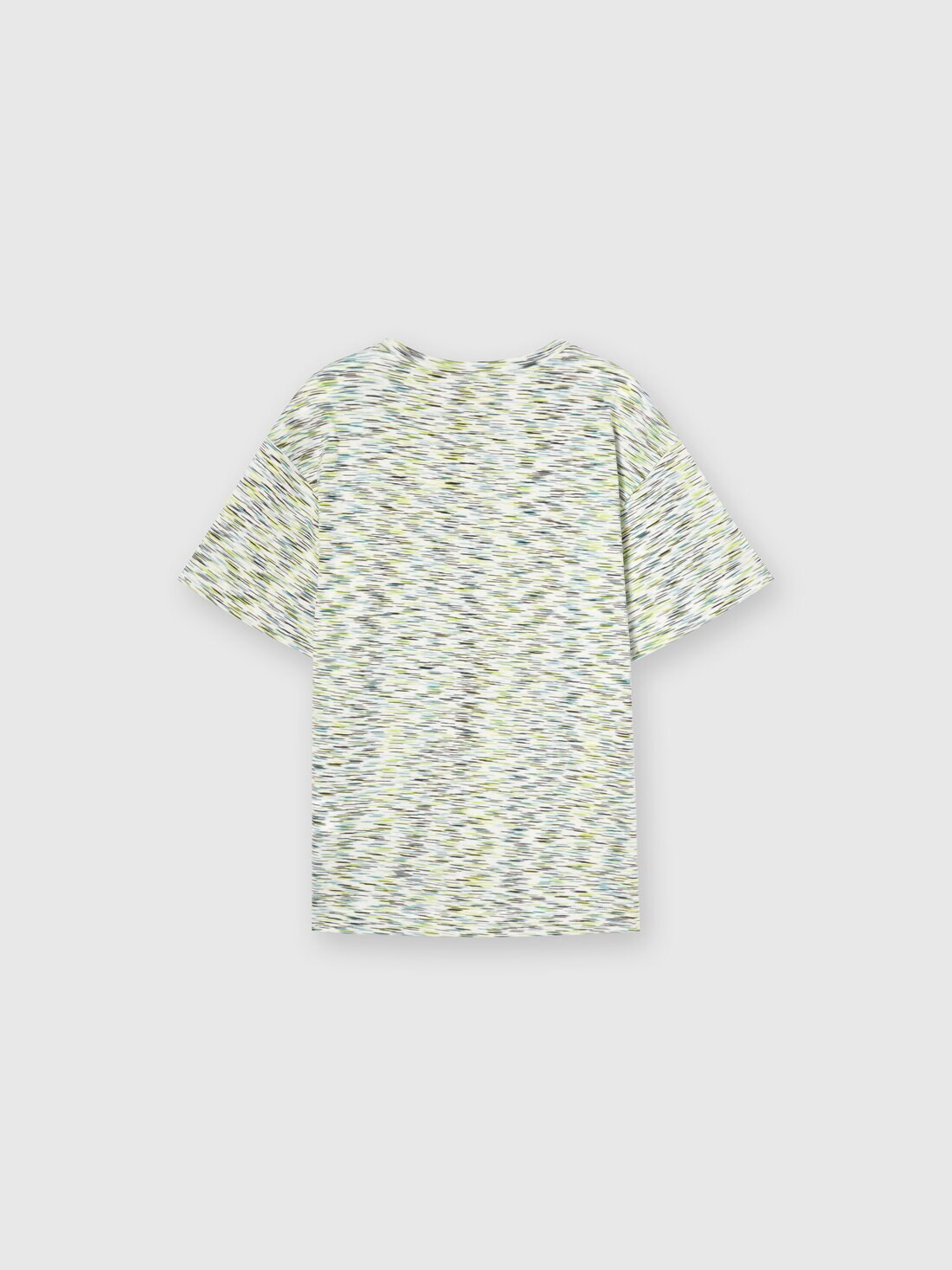 One of the most iconic patterns of the Missoni house, the slub, characterises the children's T-shirt. Made of pure cotton, this slightly oversized design features wide short sleeves and is personalised by the logo lettering on the chest.
