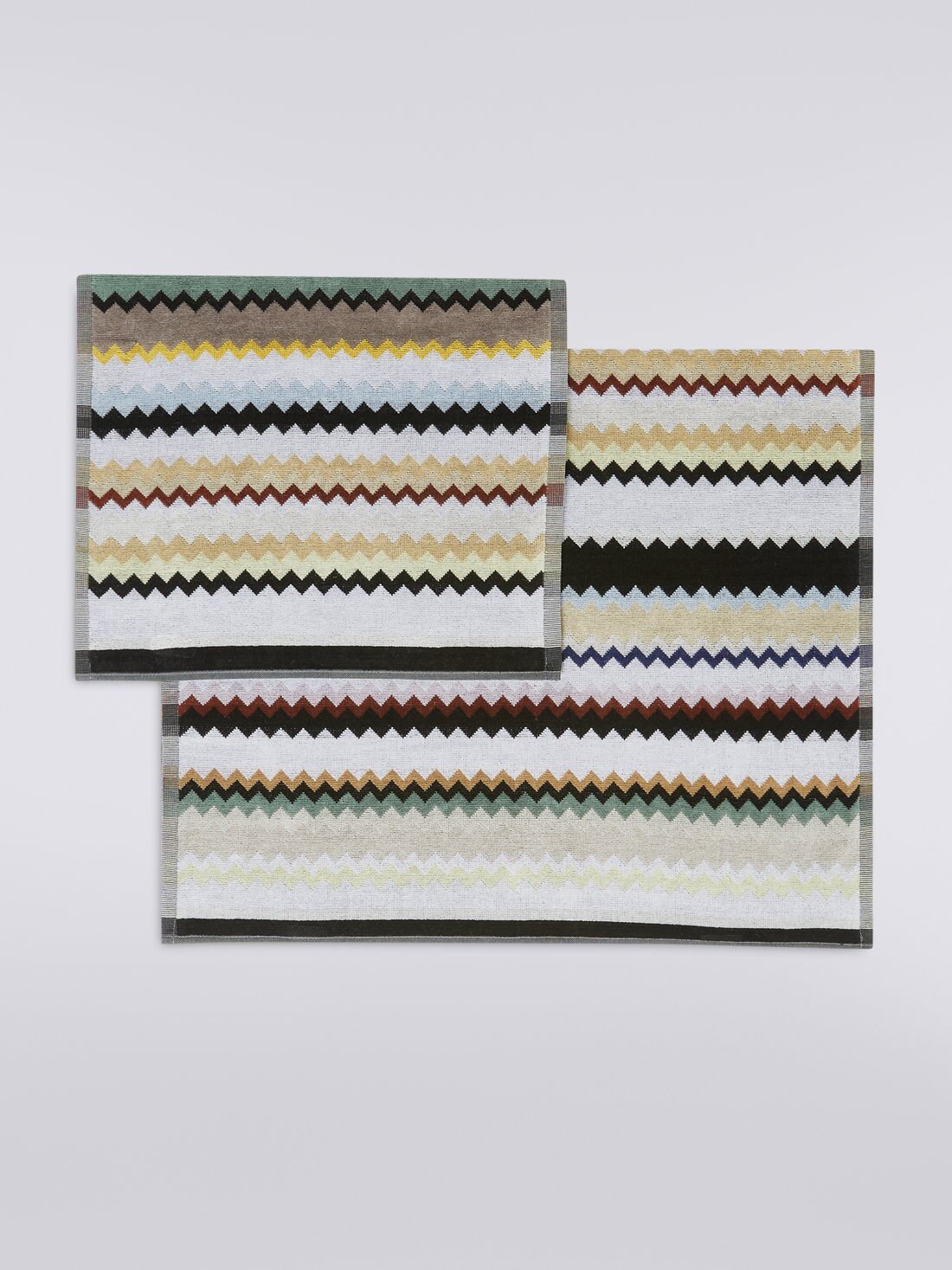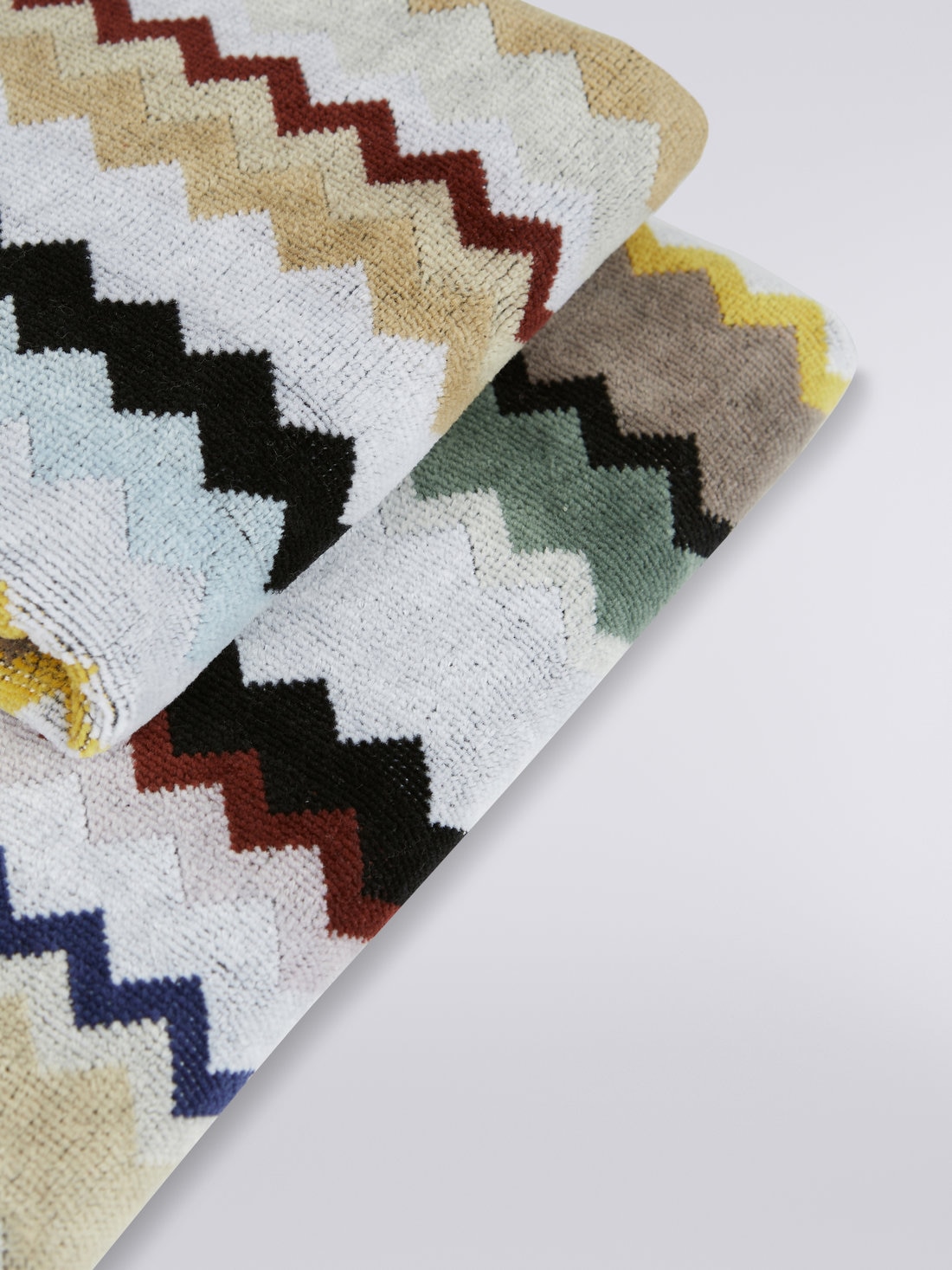 Curt, a 2-piece set of bath towels, boldly declares its allegiance to the Missoni universe with a distinctive all-over zigzag pattern. The multicoloured pattern that covers them creates a rhythm endowed with a very recognisable sense of style, as is typical of MissoniHome.