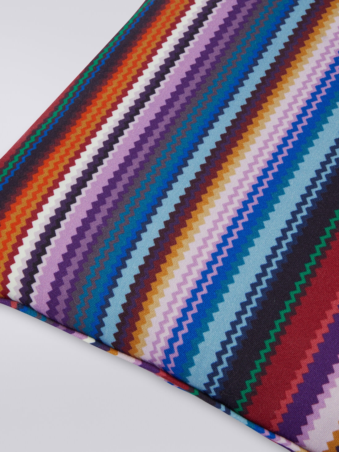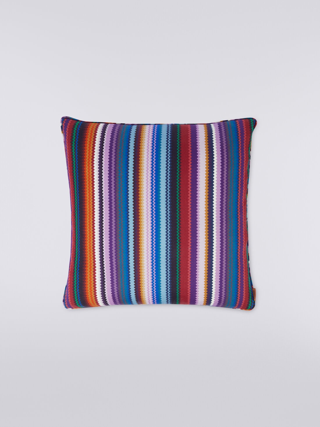 Shangai is a MissoniHome cushion, measuring 40x40 cm, made of wool satin with a vibrant multi-coloured zigzag print. The accessory is embellished with tubular piping and features the distinctive logo label. A vibrant-looking cushion, perfect for adding a touch of colour and style to any room.
