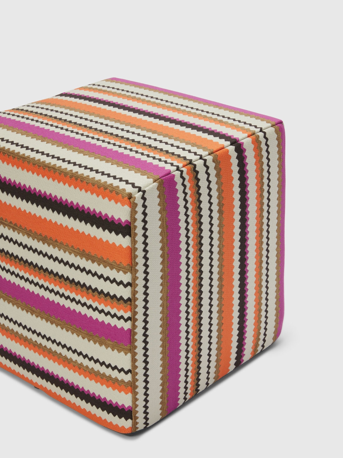 Featuring the distinctive Missoni DNA zigzag pattern, the 40x40x40 cm outdoor pouffe not only adds a touch of style to outdoor spaces, but also guarantees durability and resistance thanks to its robust, high-quality fabric. Ideal for terraces, gardens and patios, the Cancun pouffe is the perfect choice for combining functionality and design without compromise.