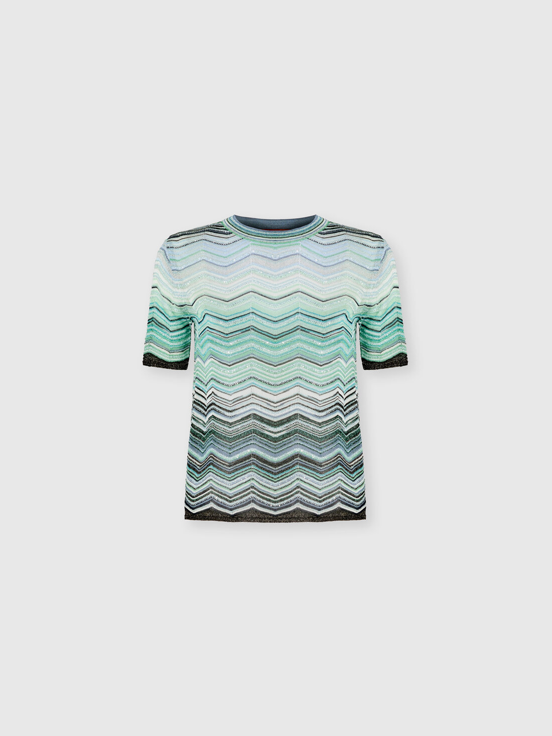 Chevron Lamé Viscose Crewneck T-Shirt with Sequins